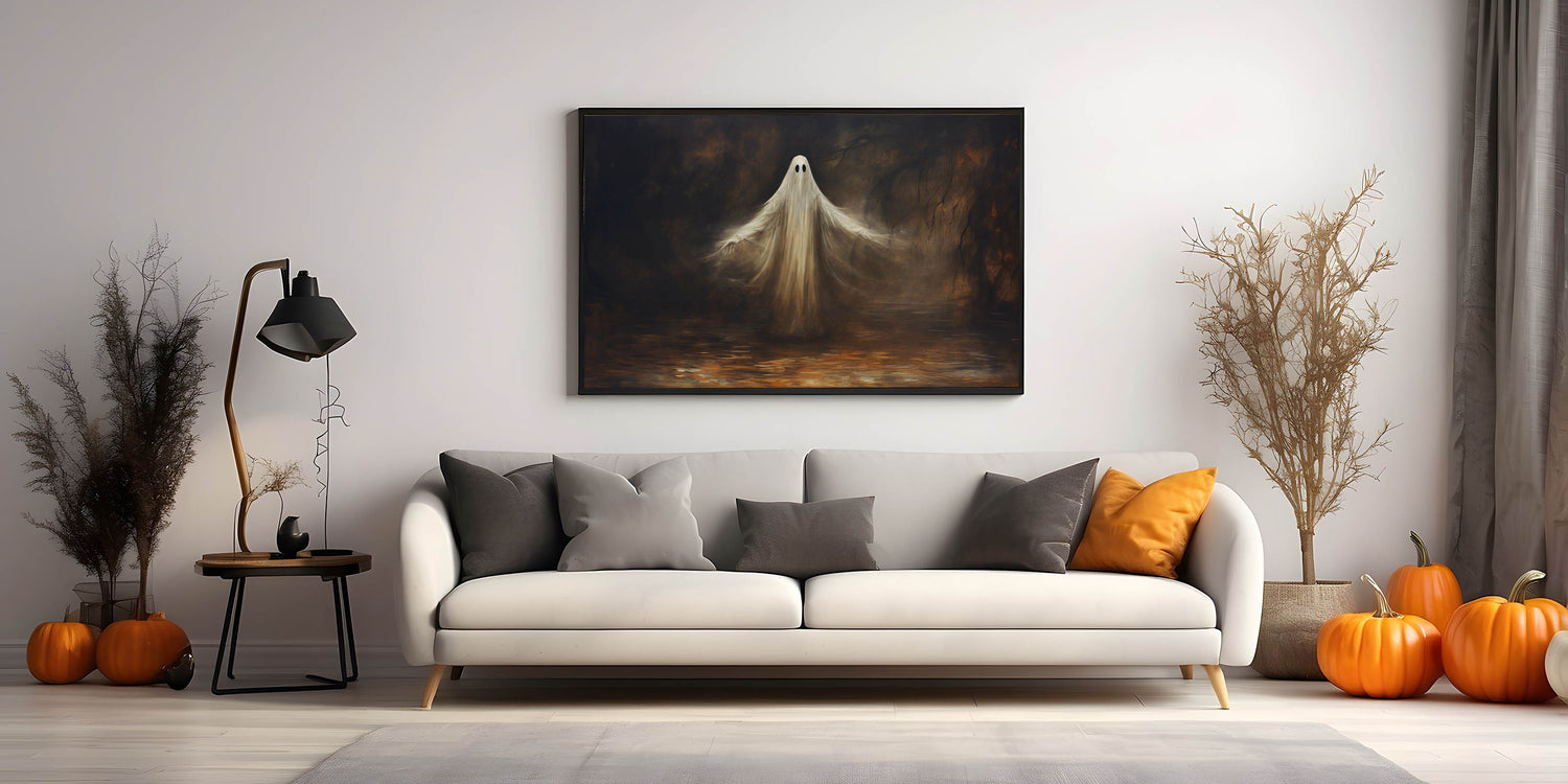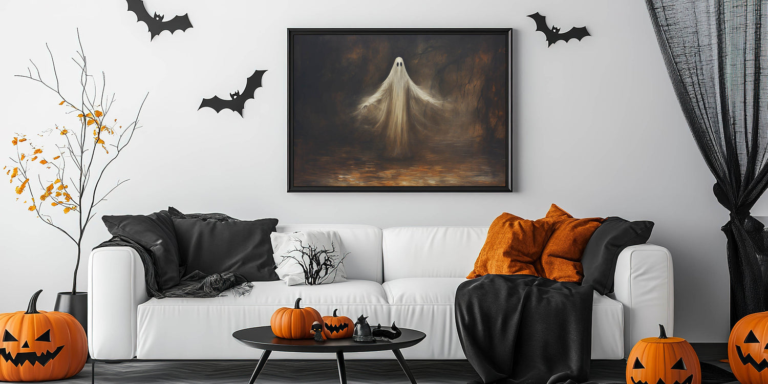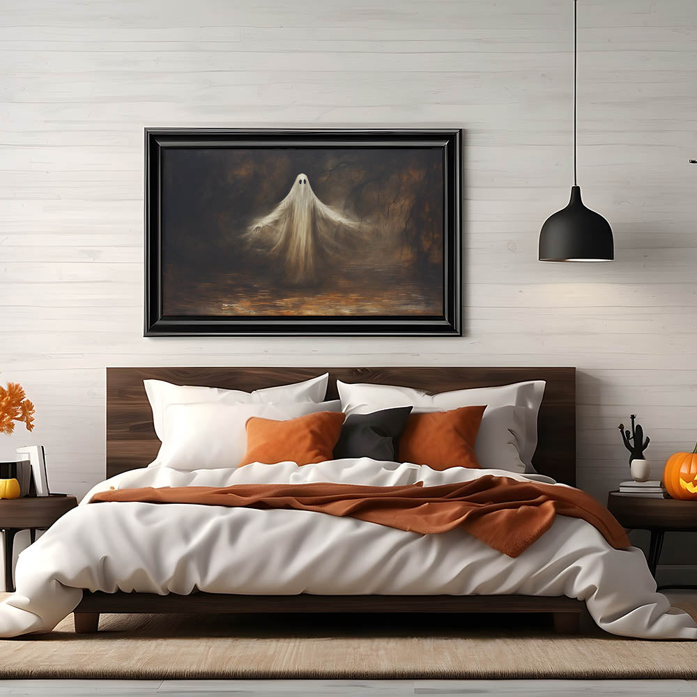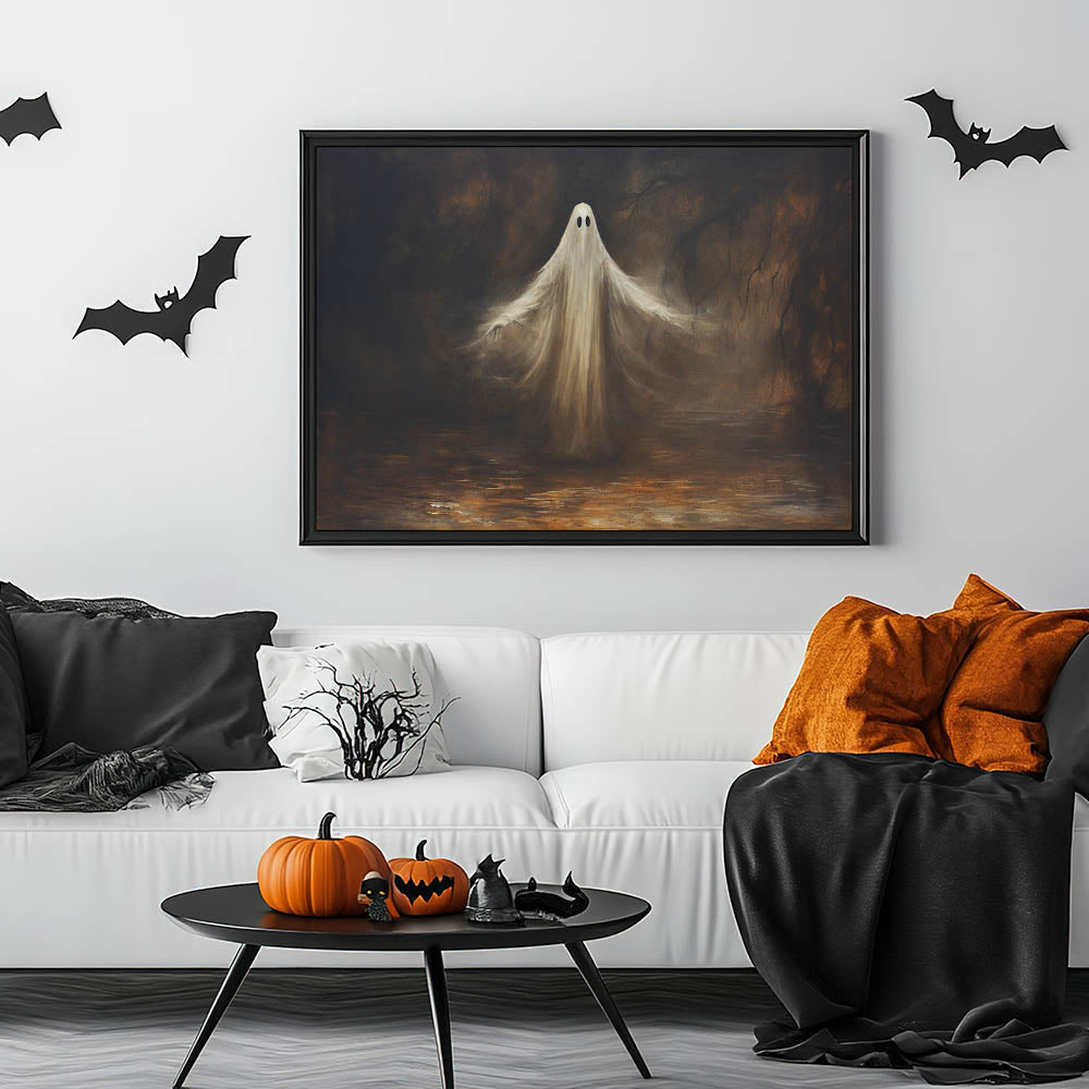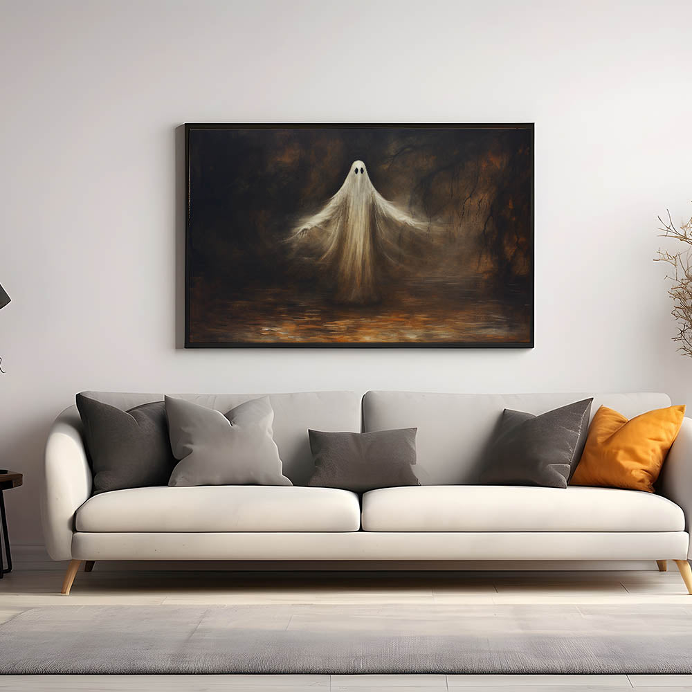 Haunted Ghost Halloween Wall Art - Spooky Gothic Oil Painting