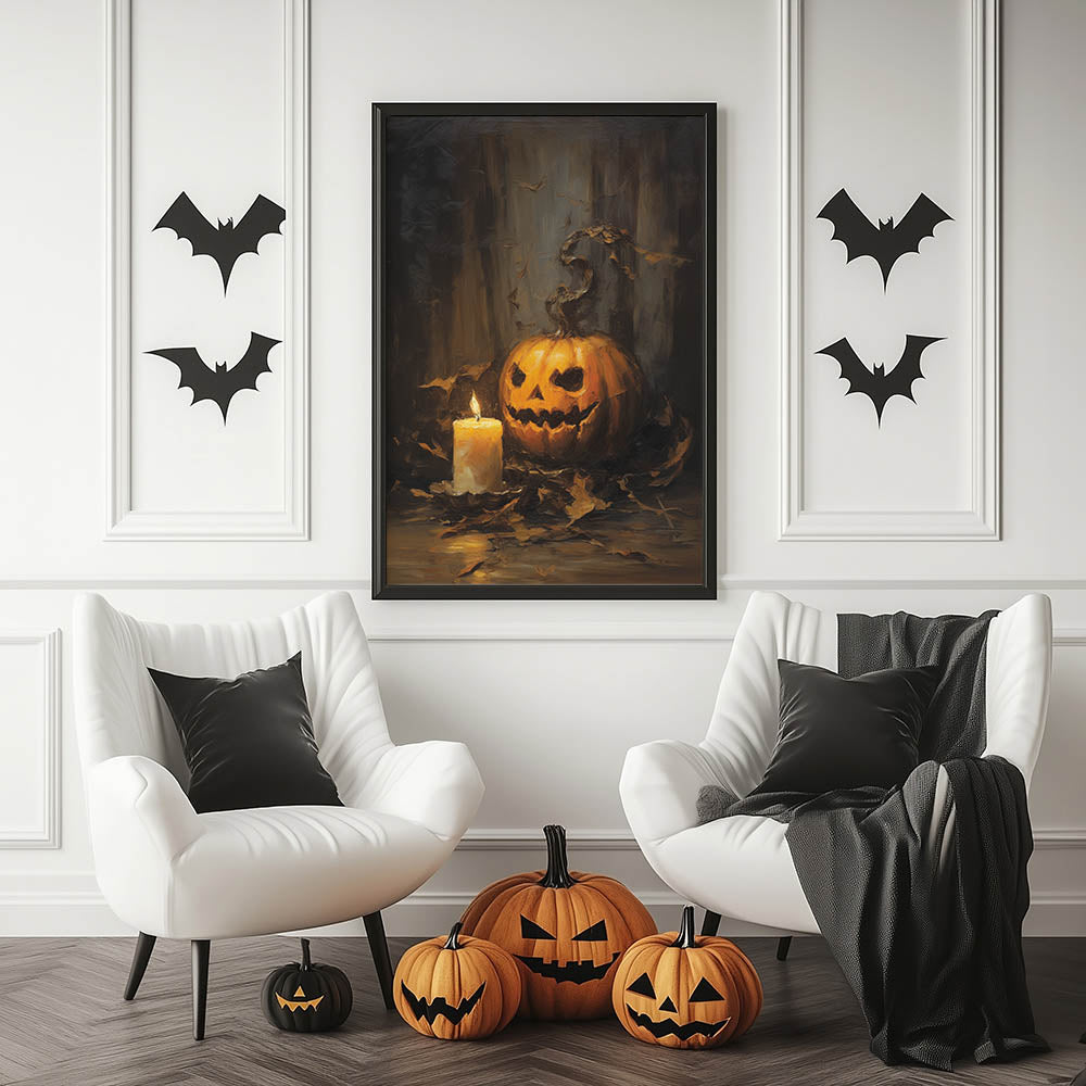 This Halloween art print is perfect for those who appreciate gothic elegance, classic Halloween imagery, and atmospheric lighting. Whether displayed as a seasonal statement piece or as part of a macabre-inspired gallery, it brings a sophisticated yet spooky charm to any setting.