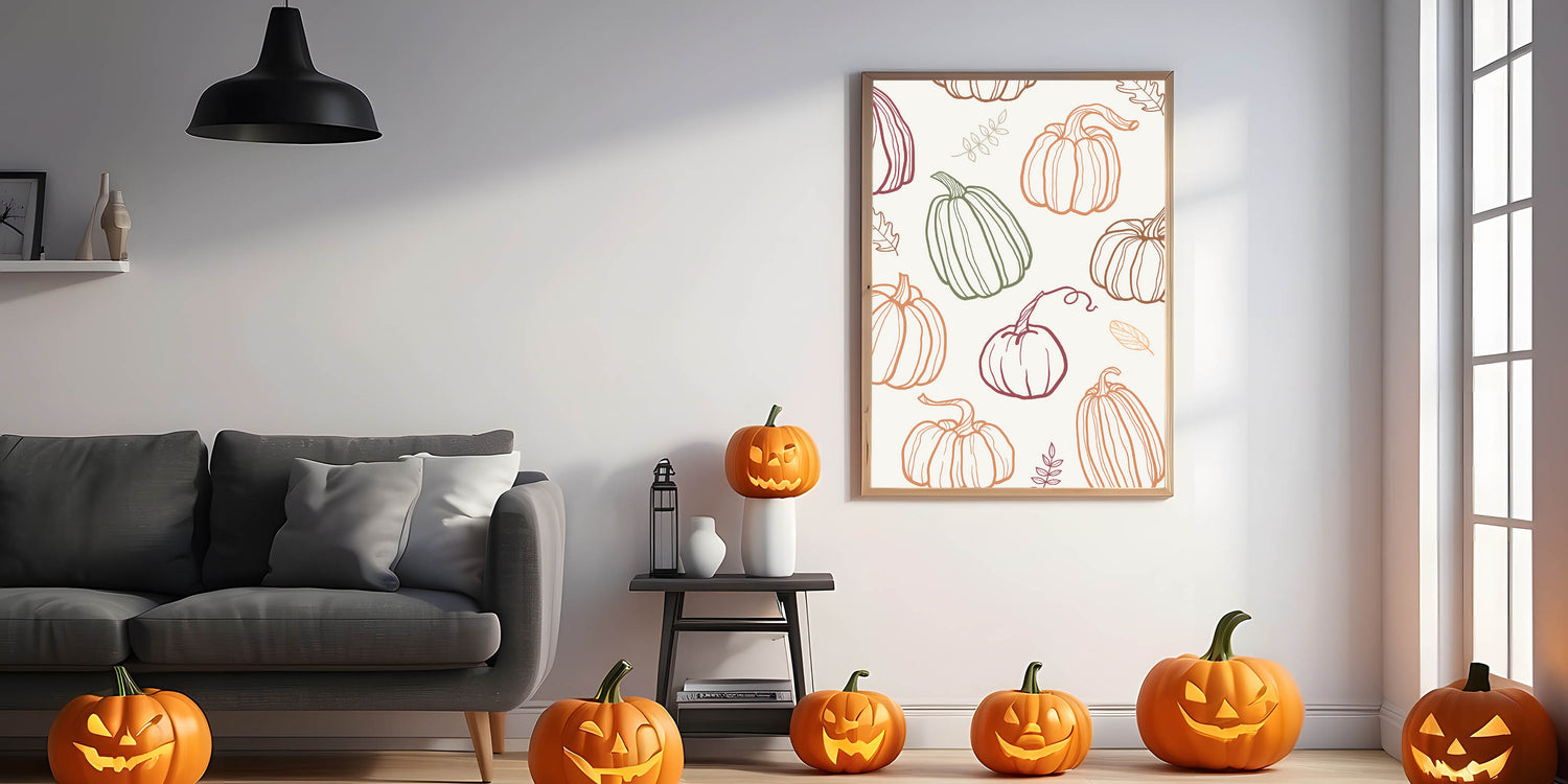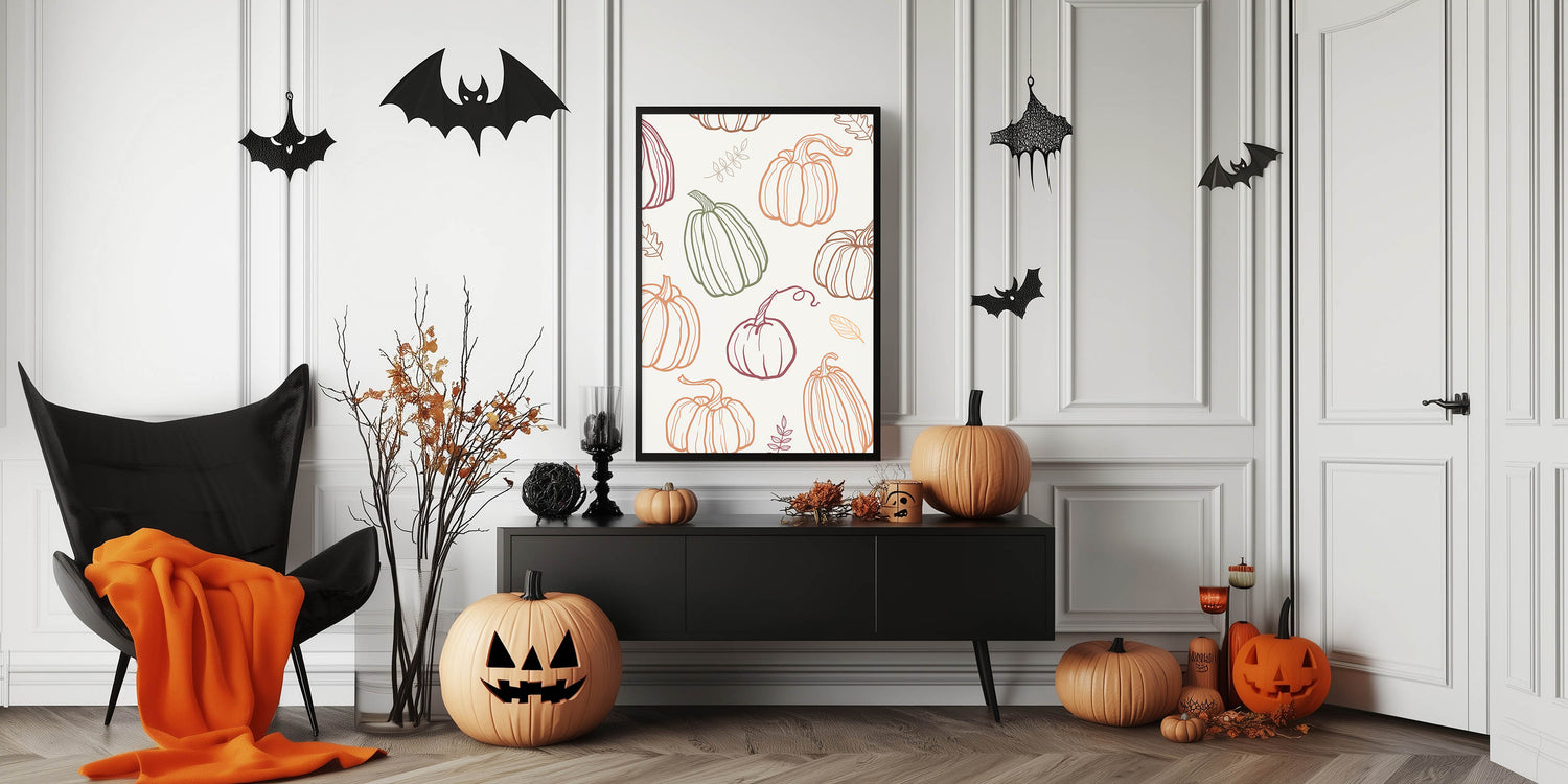• A subtle, artistic take on Halloween wall decor with neutral and warm color tones