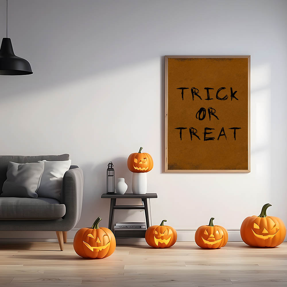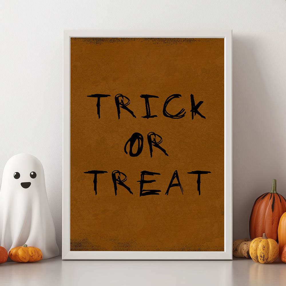 Set the perfect Halloween atmosphere with this Rustic Trick or Treat Halloween Wall Art. Featuring a haunting hand-drawn font in black against a distressed brown background, this design evokes a vintage and eerie aesthetic. Whether decorating for a Halloween party or simply embracing the spooky season, this artwork adds a rustic and mysterious charm to any space.