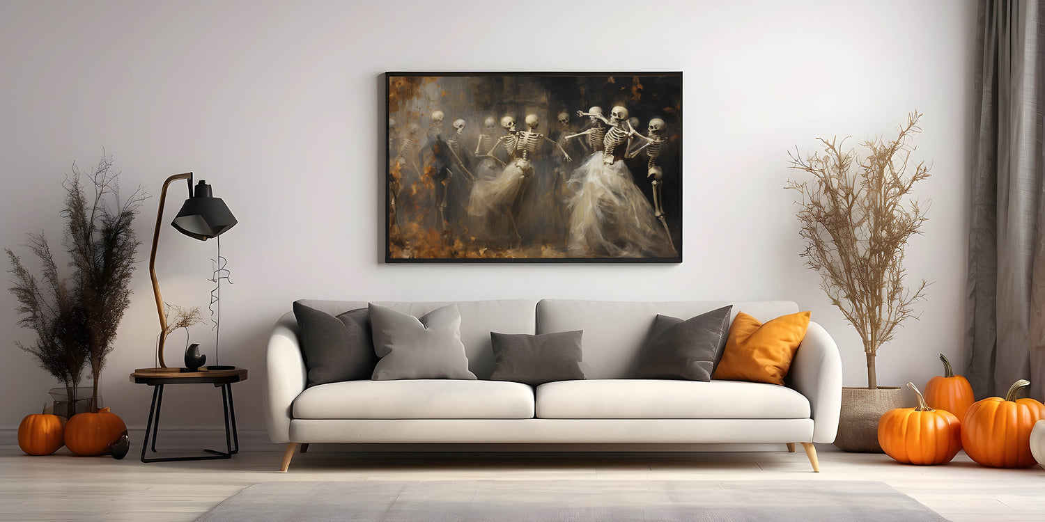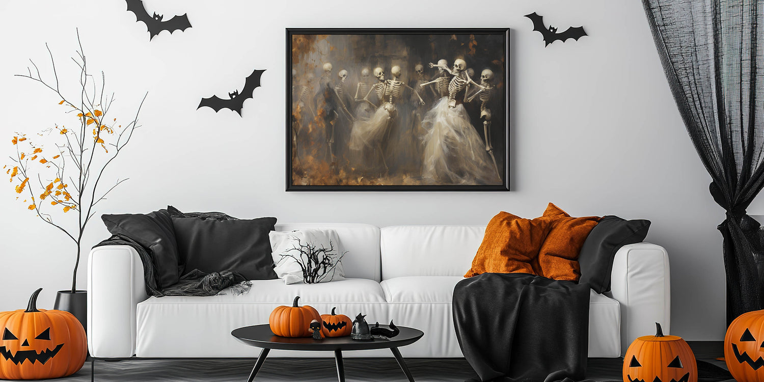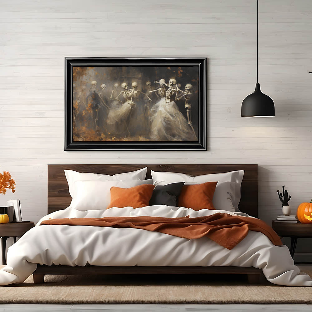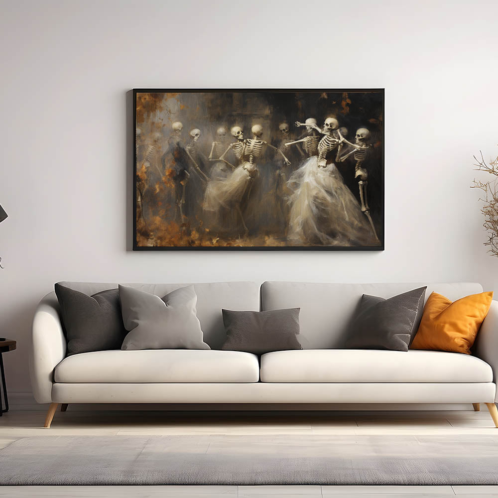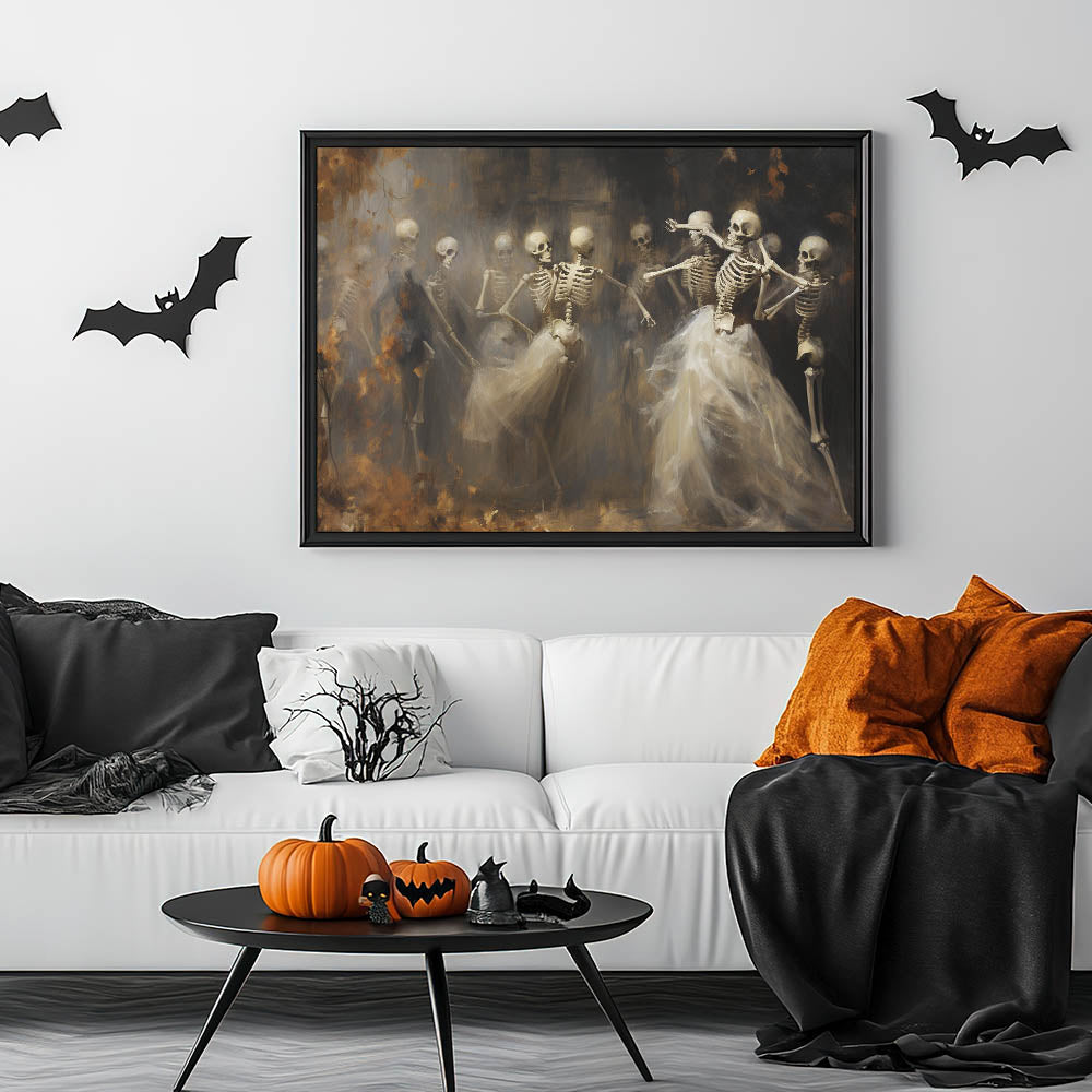 Skeleton Dance Halloween Wall Art - Gothic Haunted Oil Painting