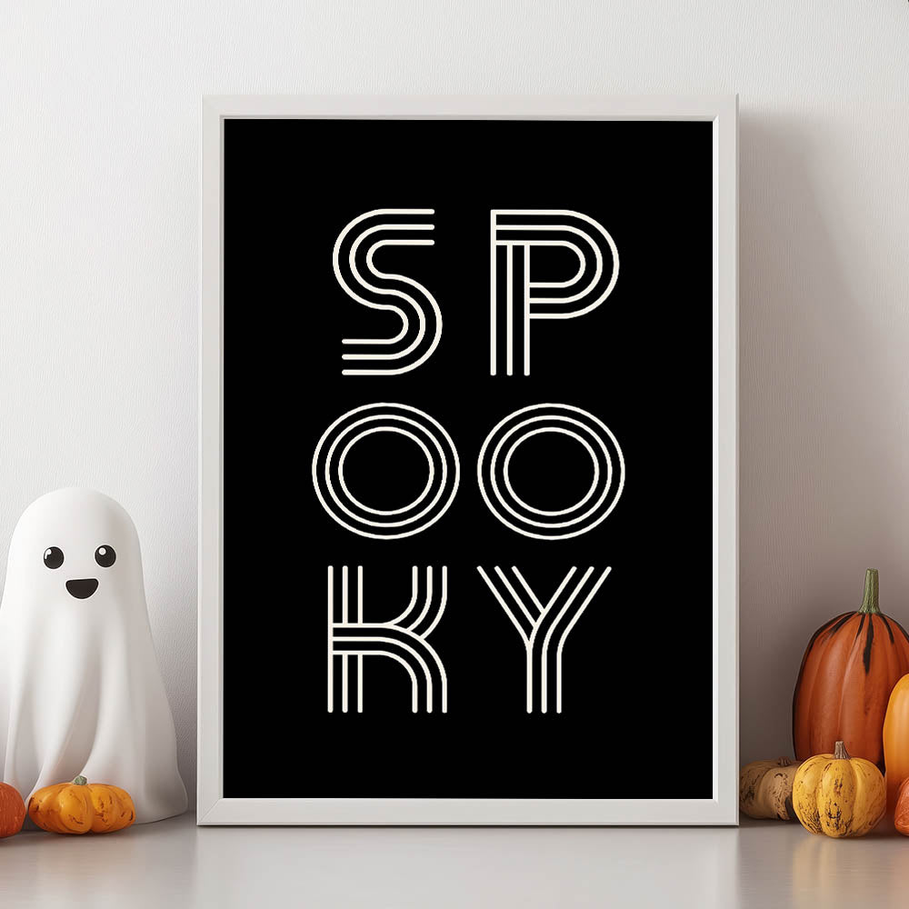 Make a bold statement this season with the Spooky Typography Halloween Wall Art. Featuring the word "SPOOKY" in a sleek, modern font with neon-style lines against a deep black background, this artwork blends contemporary design with Halloween vibes. Perfect for those who love trendy and minimalist seasonal decor.