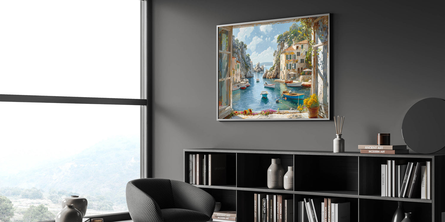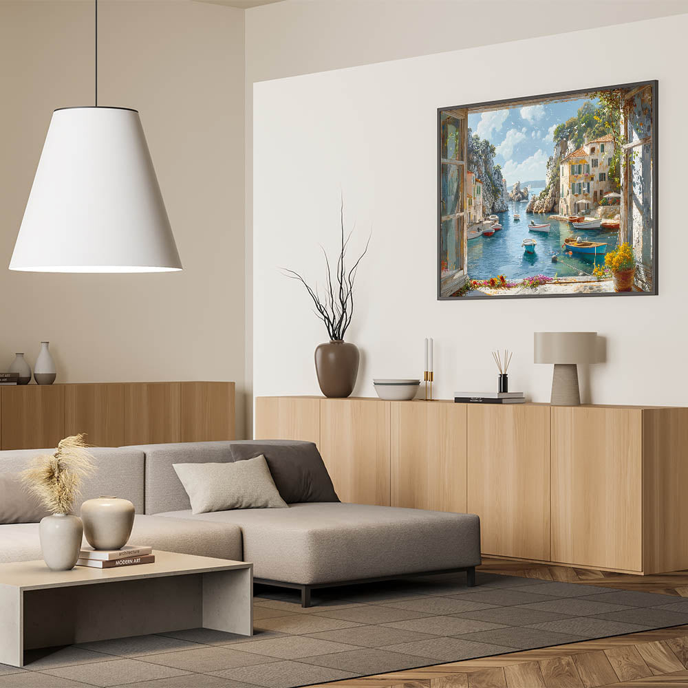 Enhance your space with the calming presence of this beautiful harbor art. Whether you choose a framed print or a sleek acrylic glass finish, this piece will bring tranquility and style to your surroundings. Shop now to transform your home with this elegant coastal harbor view.