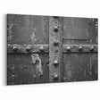 Capture the raw beauty of industrial design with this striking hardware wall art. This piece features a close-up view of textured metal panels connected by bolts, highlighting the rugged details and aged surfaces. The monochromatic tones and peeling paint create a powerful visual impact, making this artwork an ideal addition to spaces that embrace a modern industrial or minimalist aesthetic.