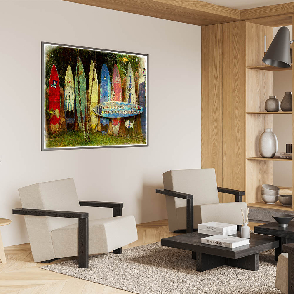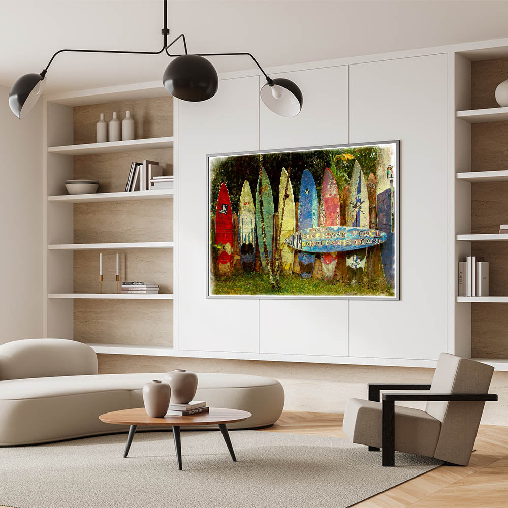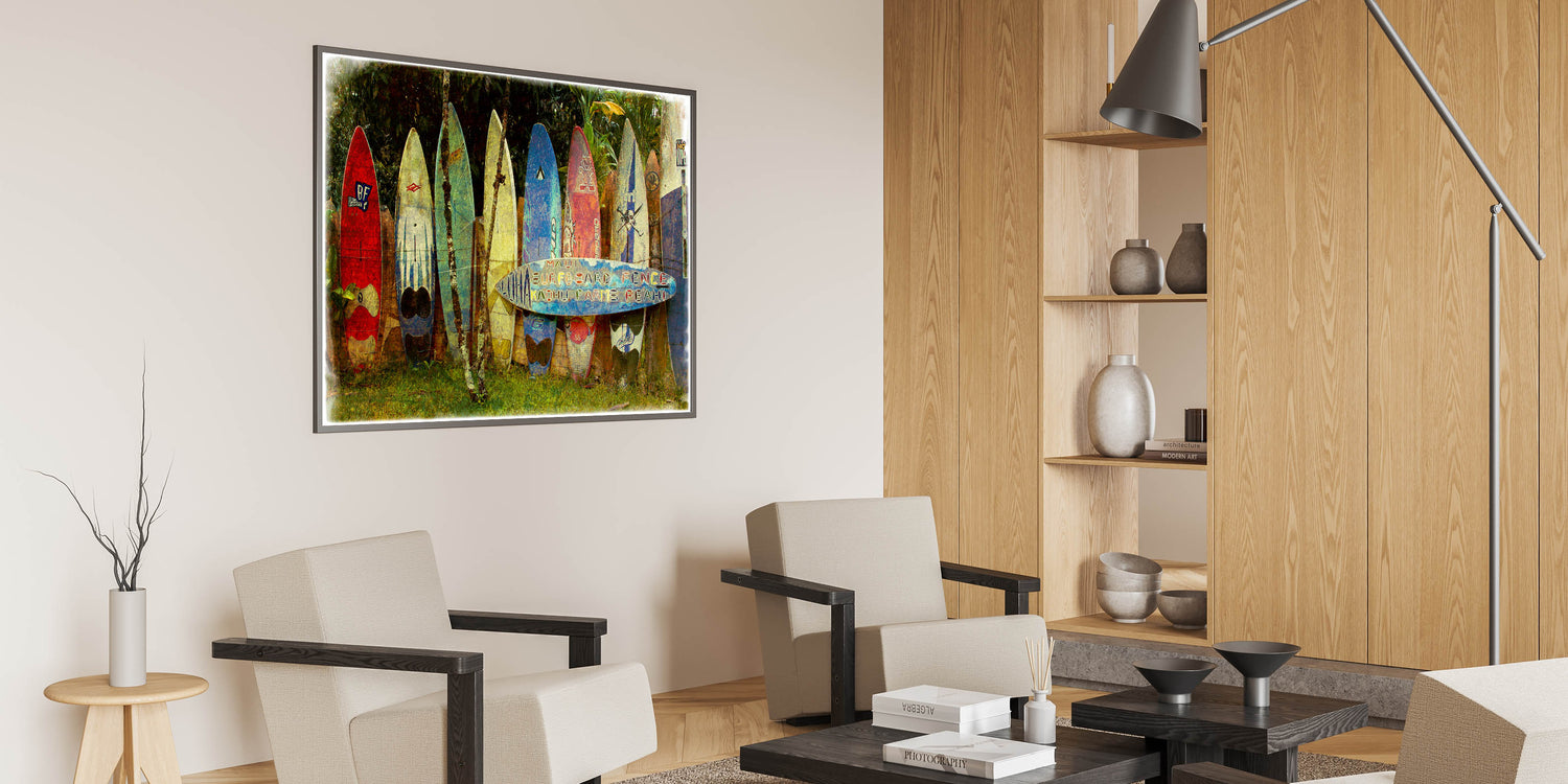 Hawaii Art Prints - Maui Surfboard Fence in Vibrant Tropical Colors