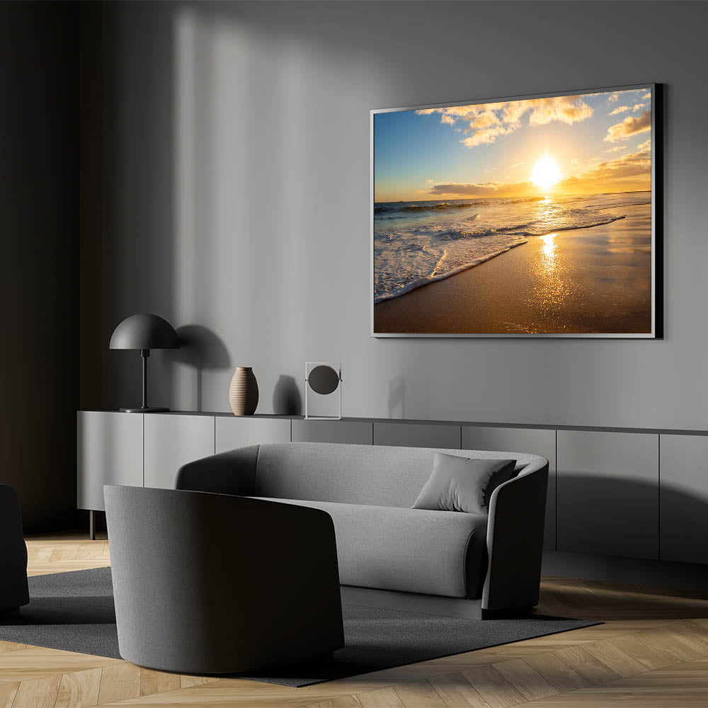 Kauai Beach Scenes – Golden Sunset Over Shoreline Canvas & Framed Art