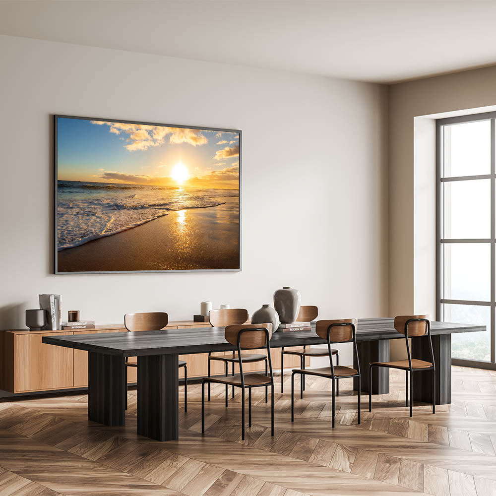 Enhance your home with this Kauai wall decor, offering a breathtaking view of the island’s sunset over the ocean, and create a peaceful retreat in your own space.