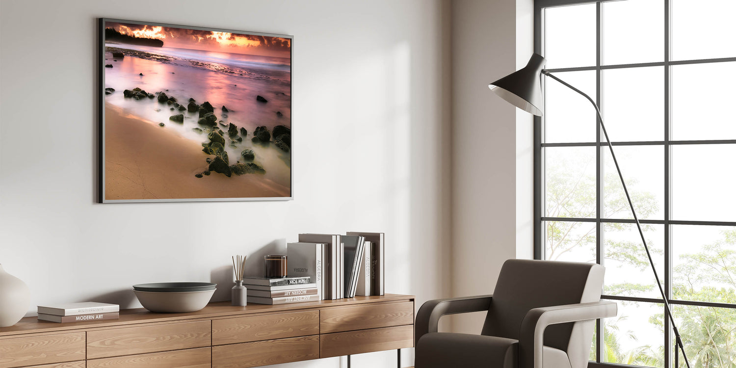 Kauai Framed Art – Tranquil Beach Sunset & Hawaiian Island Photography
