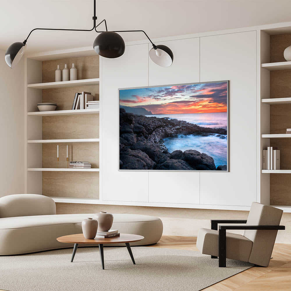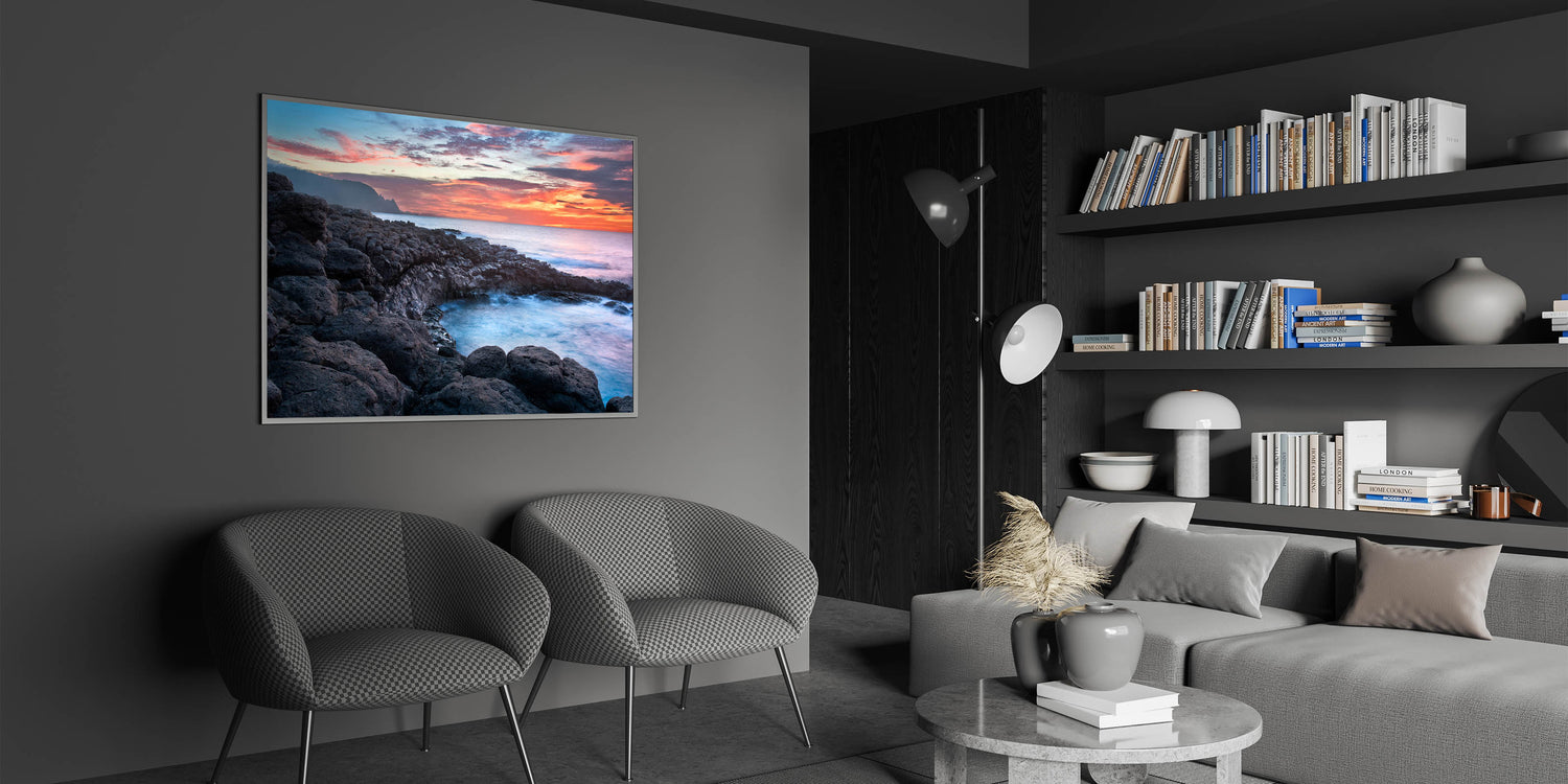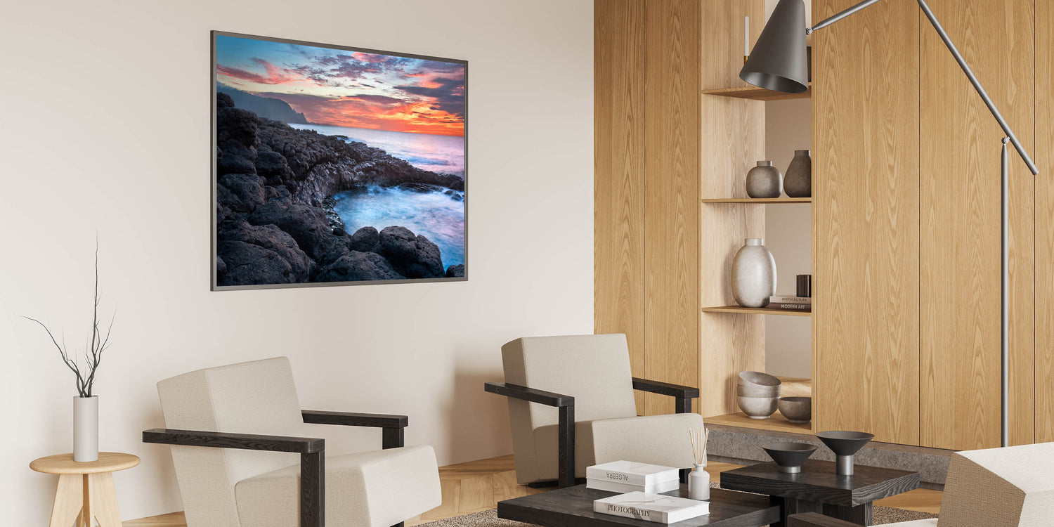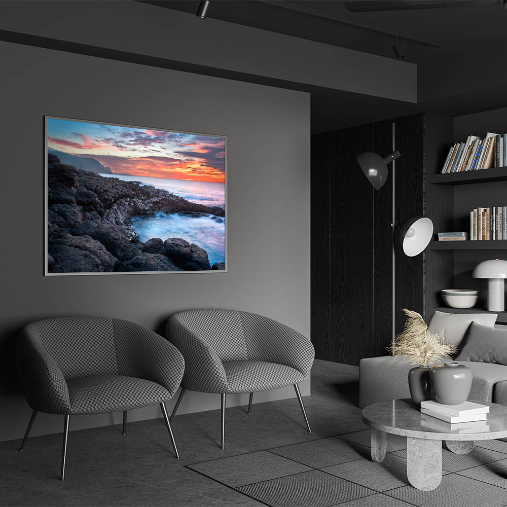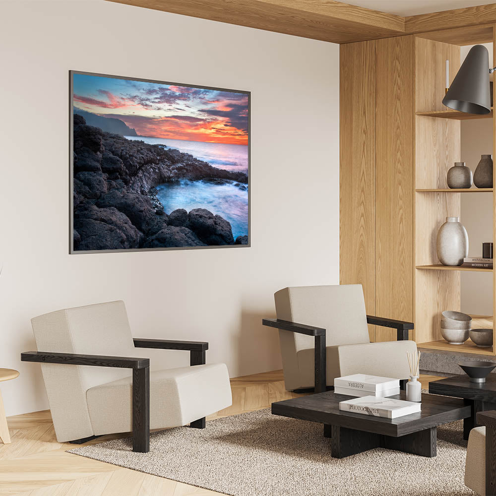 This Kauai wall decor is perfect for transforming your space with the bold, natural beauty of Hawaii’s coastline at sunset, offering an escape to paradise with every glance.