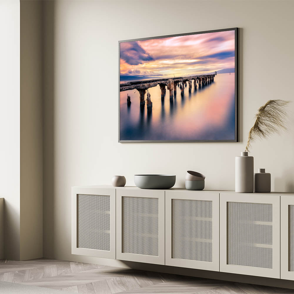 Capture the beauty of Maui with this serene Maui Photography print featuring an old rustic pier at sunset. The soft, pastel hues of the sky reflect gently off the calm waters, creating a tranquil scene that perfectly encapsulates the quiet beauty of island life. This Tropical Canvas Art is a stunning way to bring the relaxing vibes of Maui’s sunsets into your home or office.
