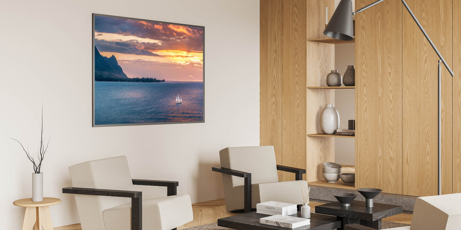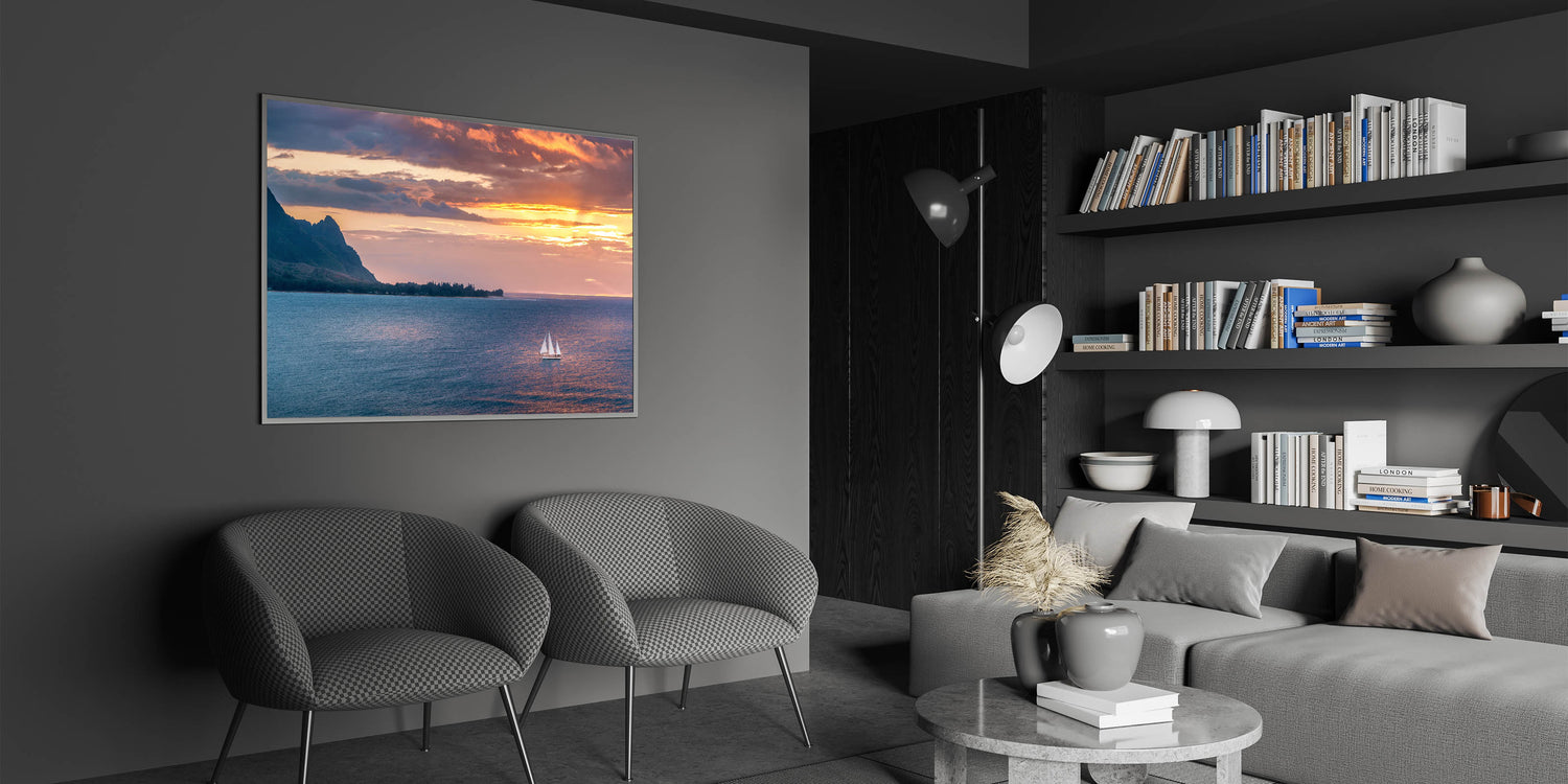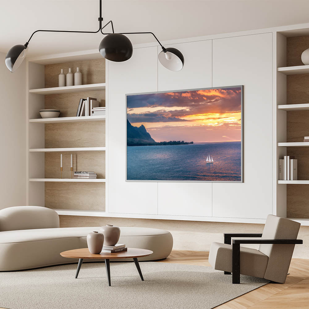 - Perfect for bedrooms, living rooms, or offices, offering a peaceful view of Kauai’s breathtaking sunsets.