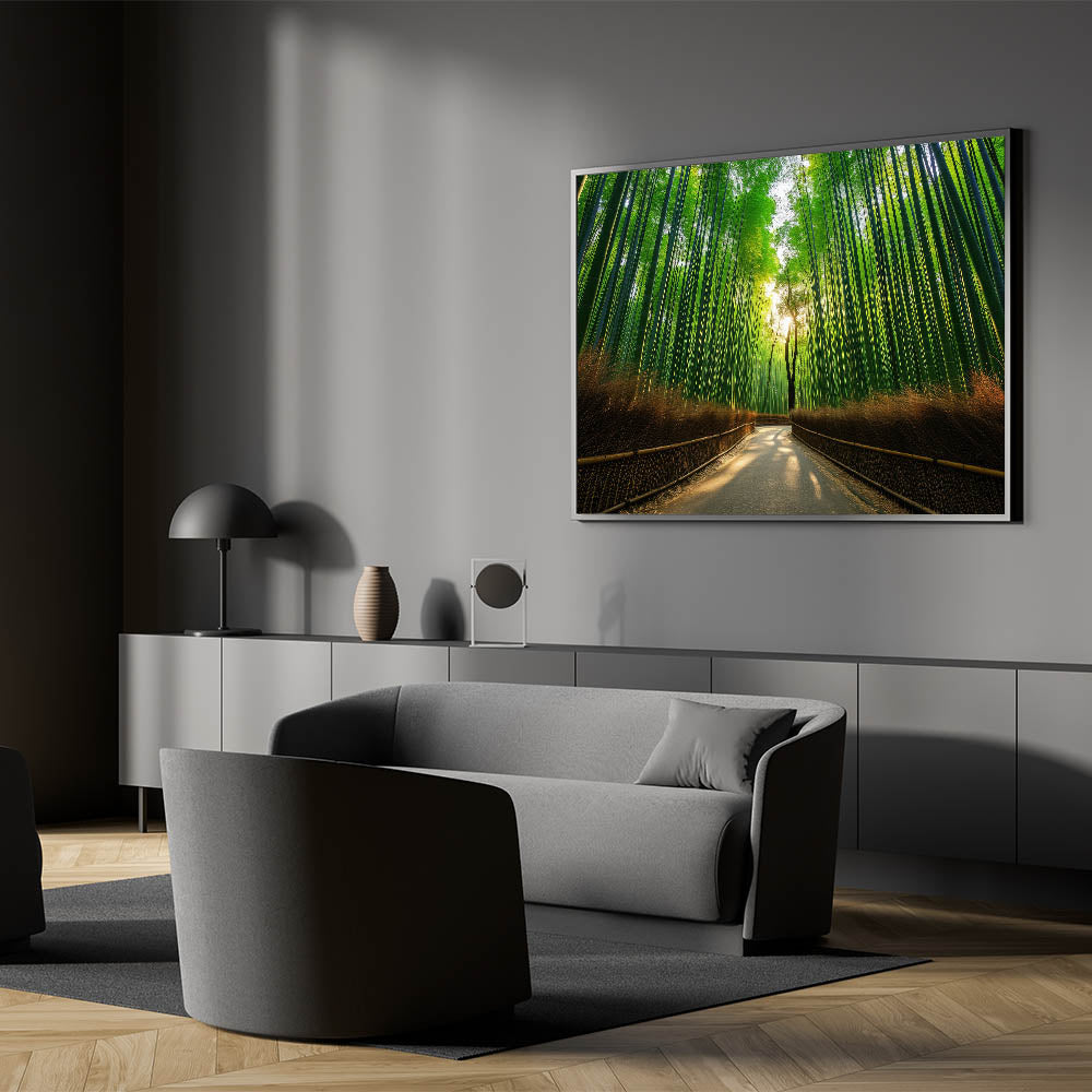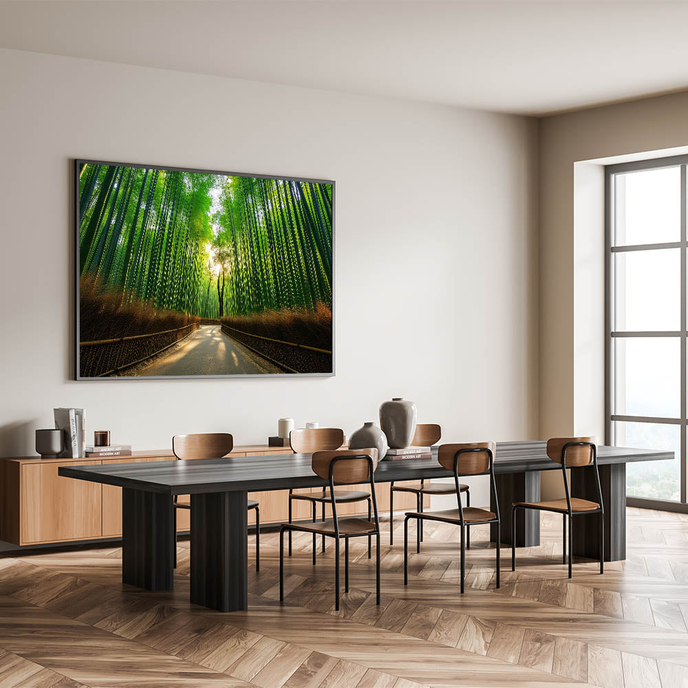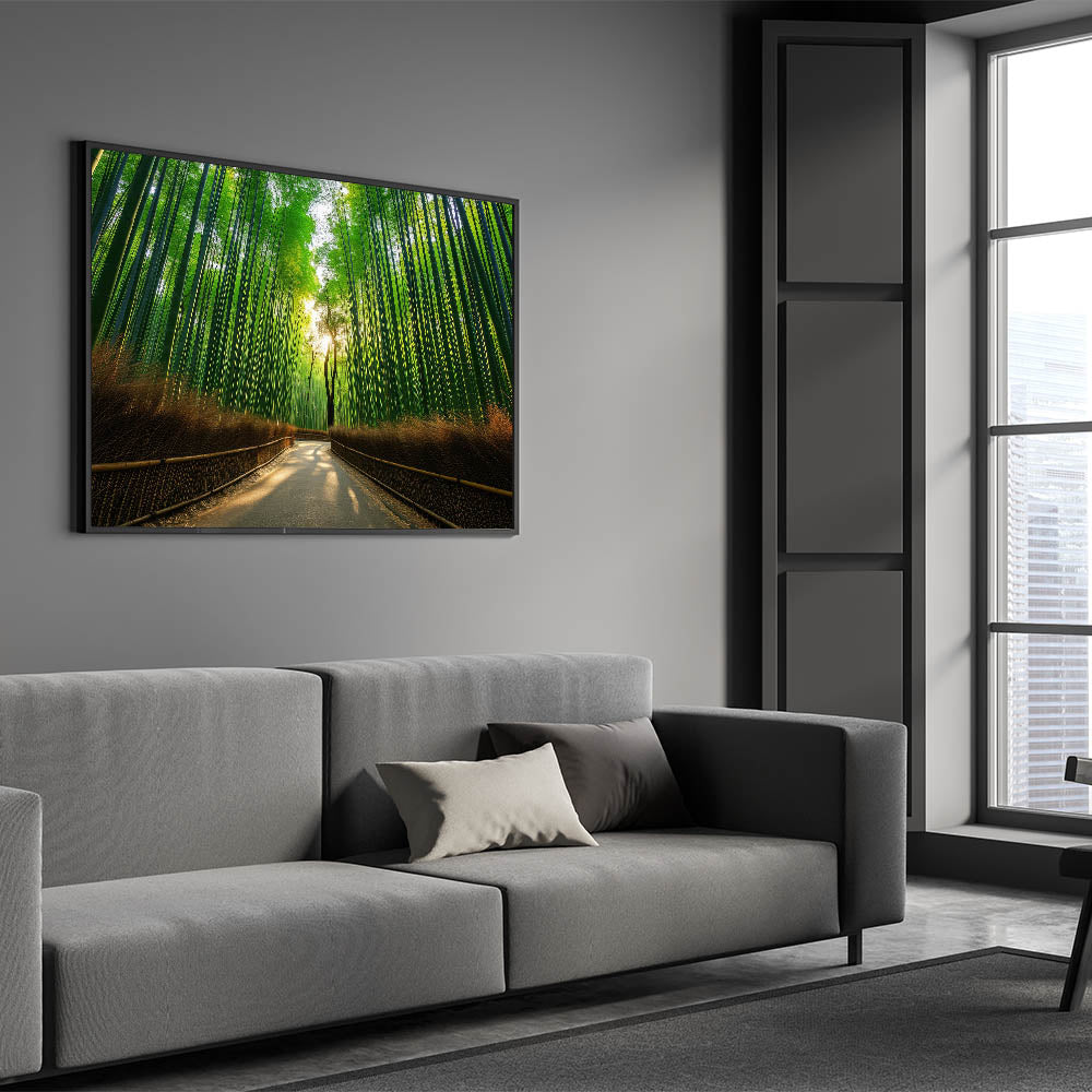 Immerse yourself in the tranquil beauty of Maui’s natural landscapes with this Tropical Canvas Art. The serene bamboo forest path, illuminated by soft sunlight filtering through the towering trees, creates an inviting atmosphere that brings the peaceful energy of nature into your home or office. This Maui Scenery Art captures the island's unique beauty and makes an ideal addition to any room in need of a calming, nature-inspired touch.