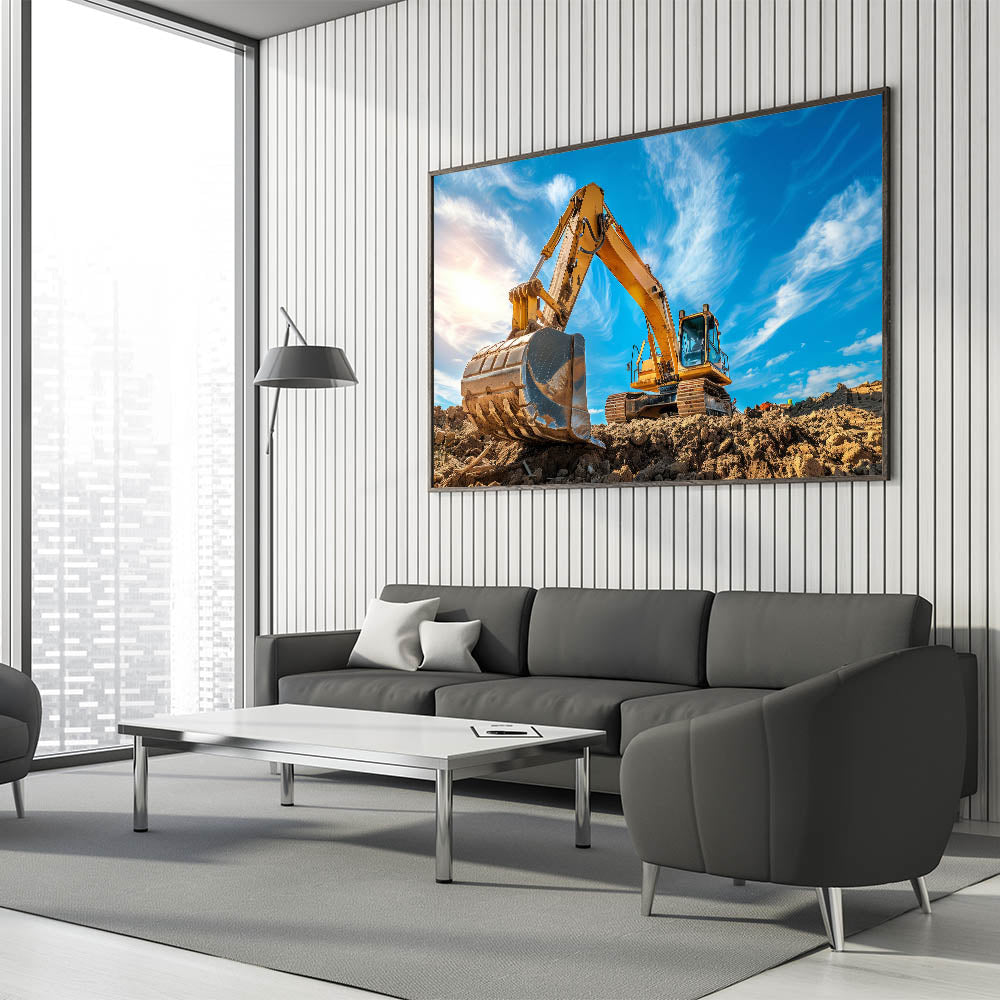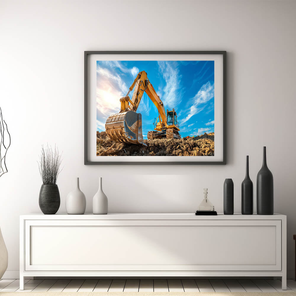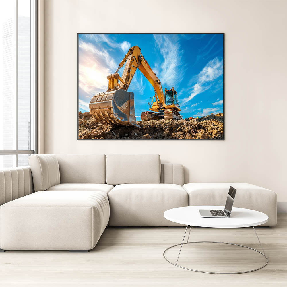 - Vivid Imagery: The high-definition print highlights the intense contrast between the rich blue sky and the bold excavator, ensuring this artwork becomes a centerpiece in any room.