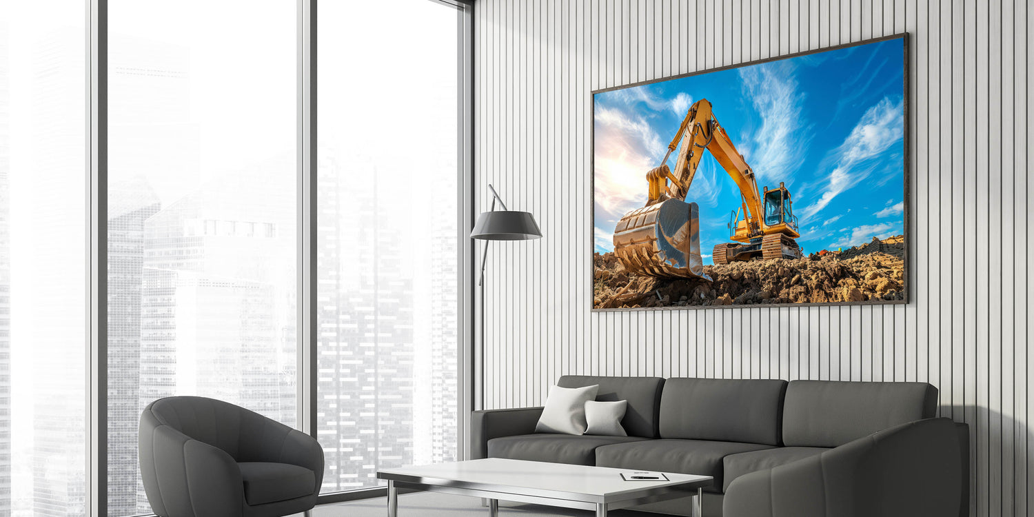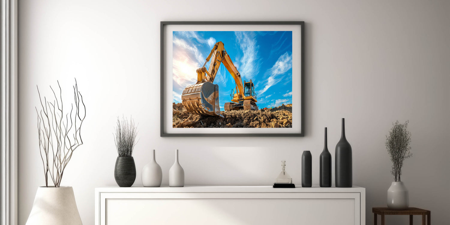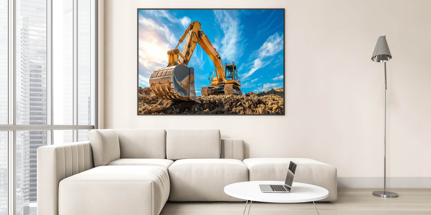 - Vivid Imagery: The high-definition print highlights the intense contrast between the rich blue sky and the bold excavator, ensuring this artwork becomes a centerpiece in any room.