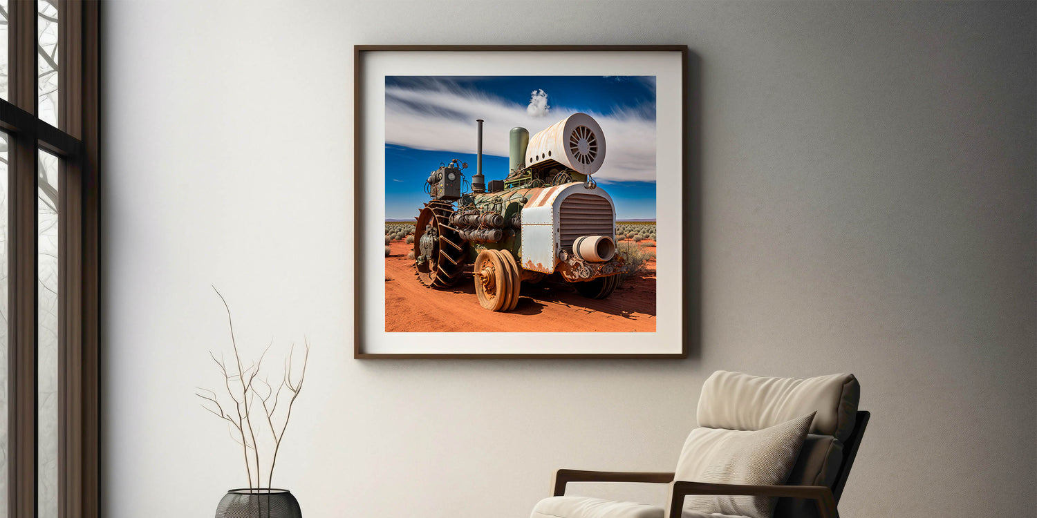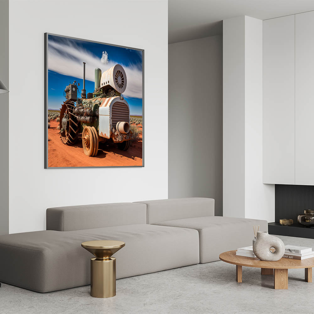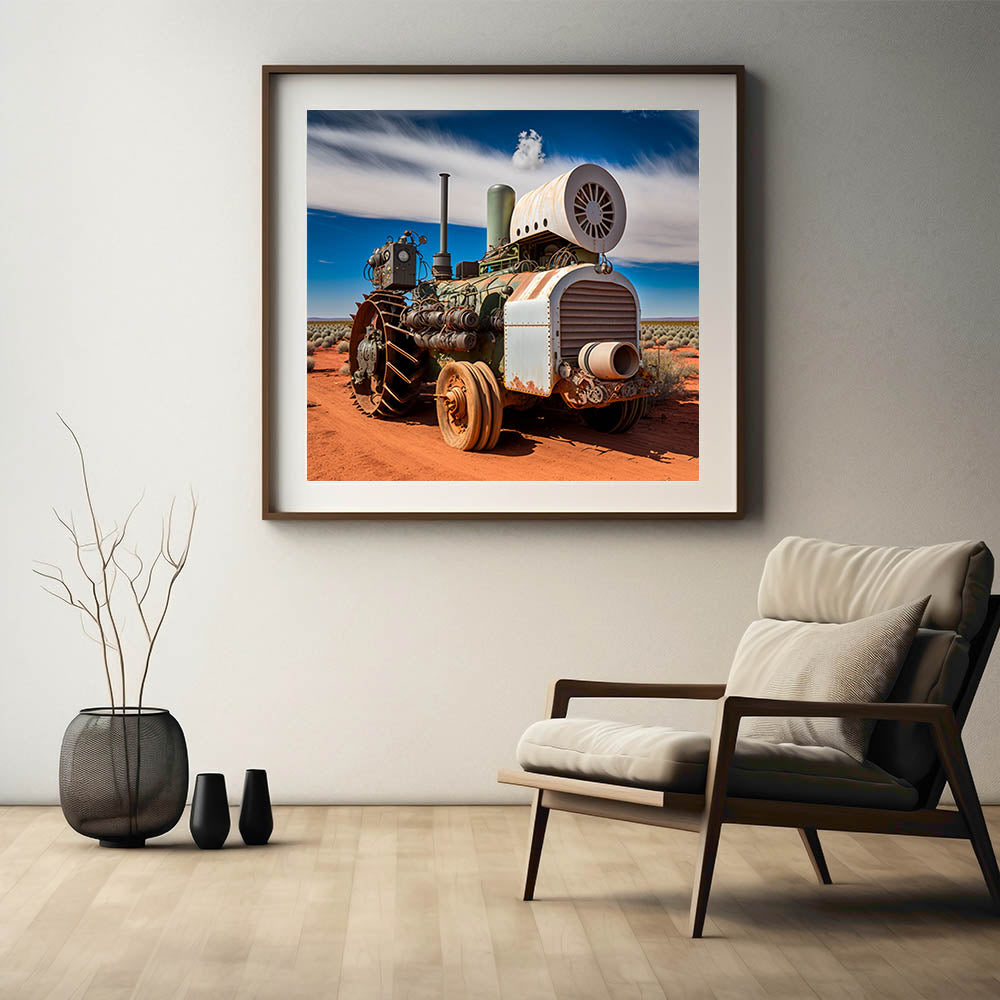 - High-quality print featuring a vintage construction vehicle in vibrant colors.