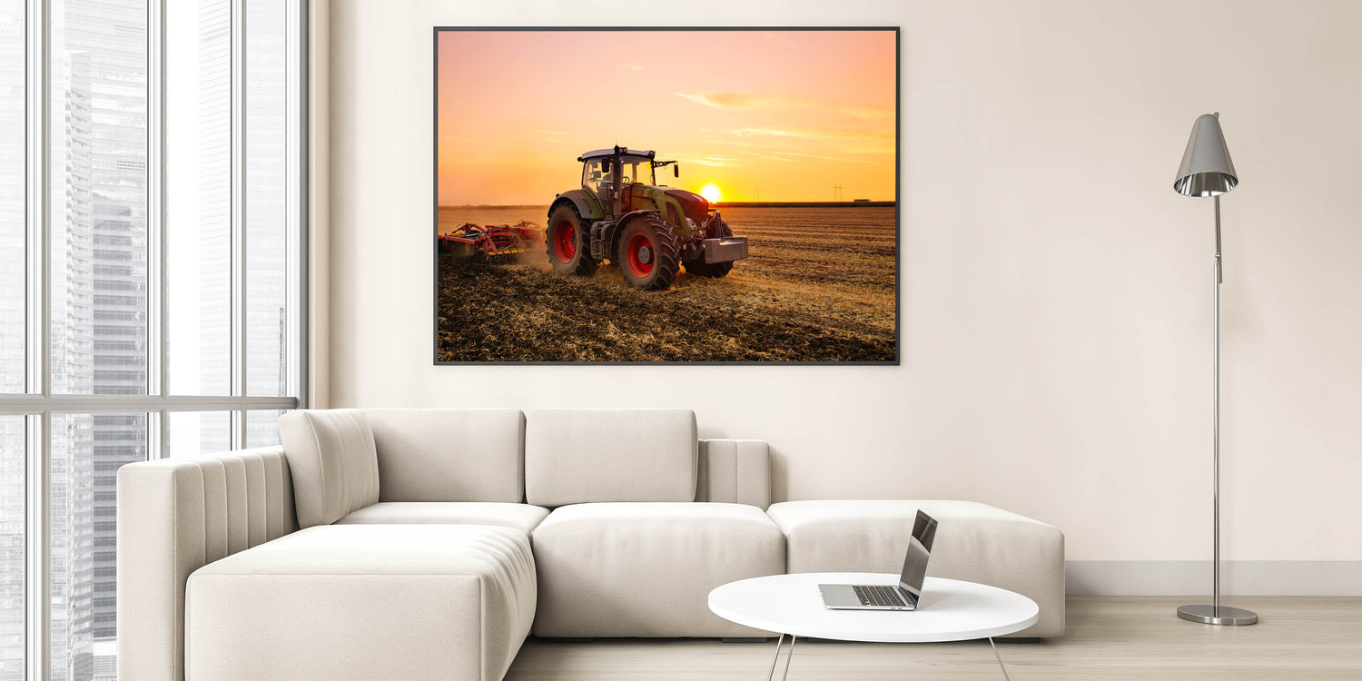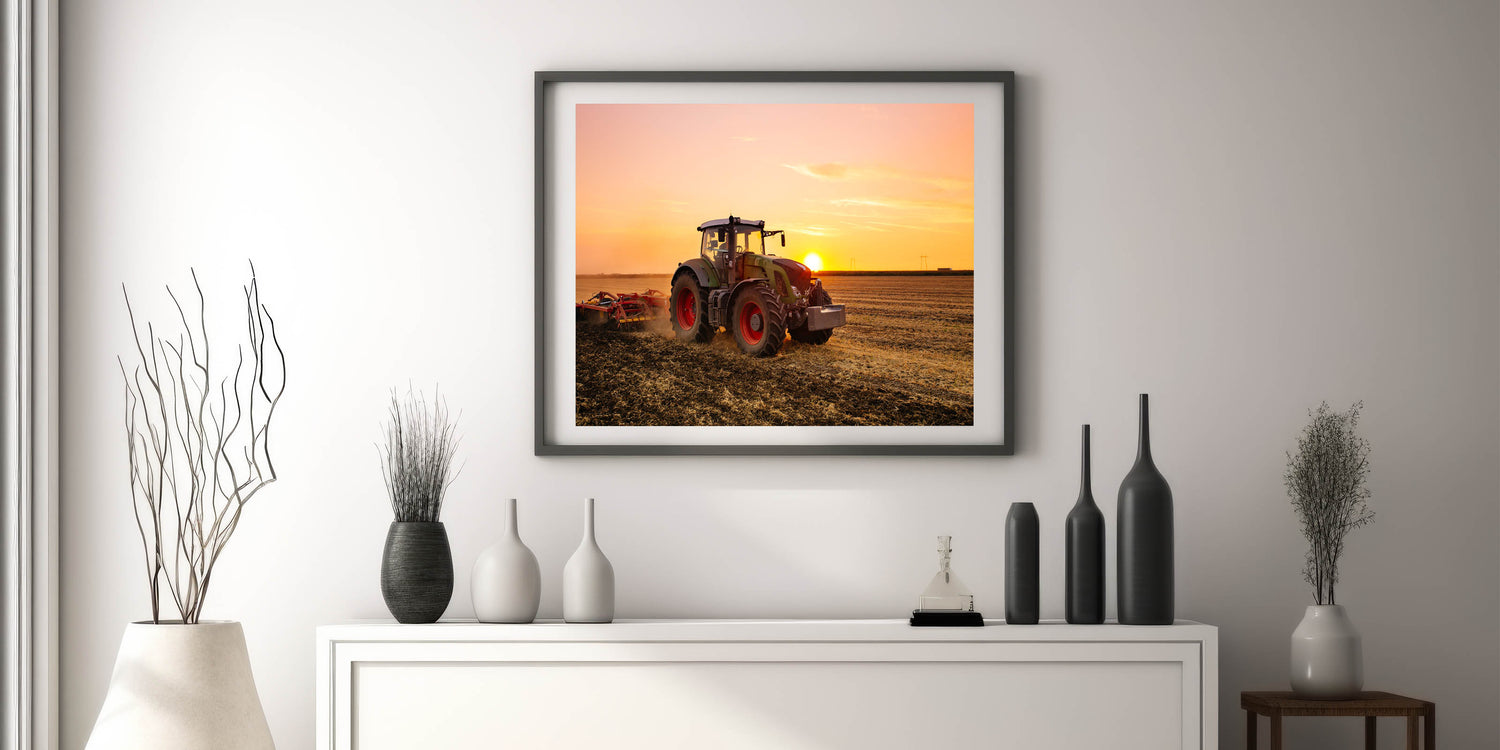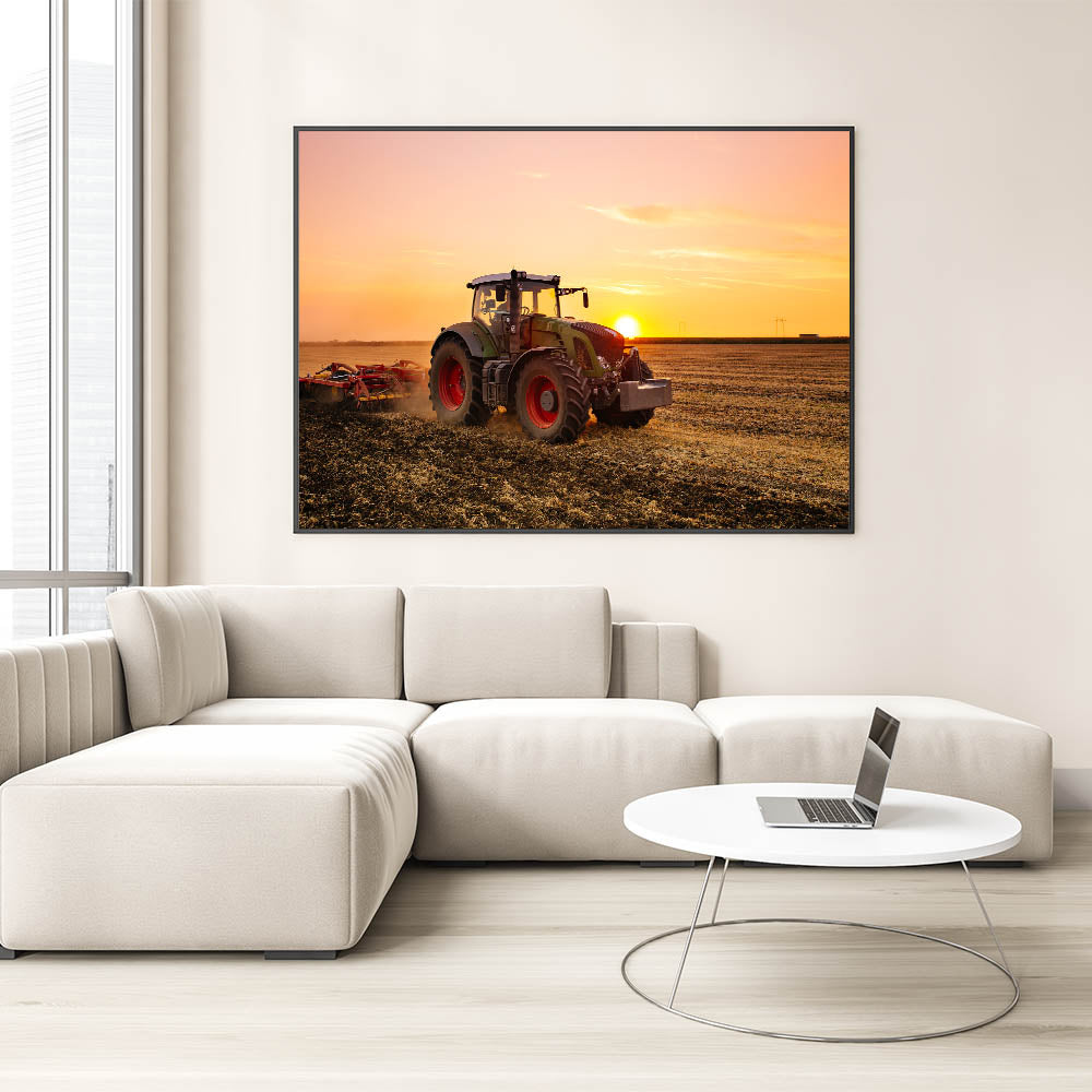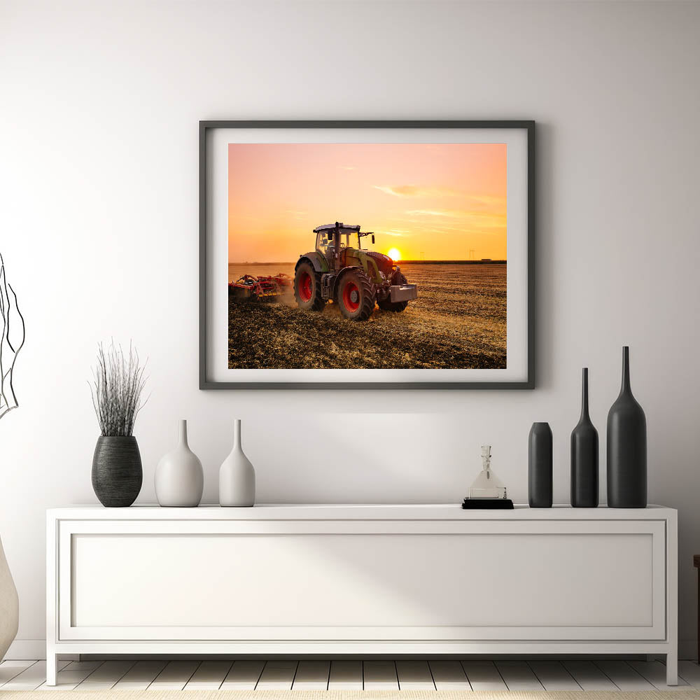 • High-quality print that highlights the vivid colors of the sunset and the intricate details of the tractor.