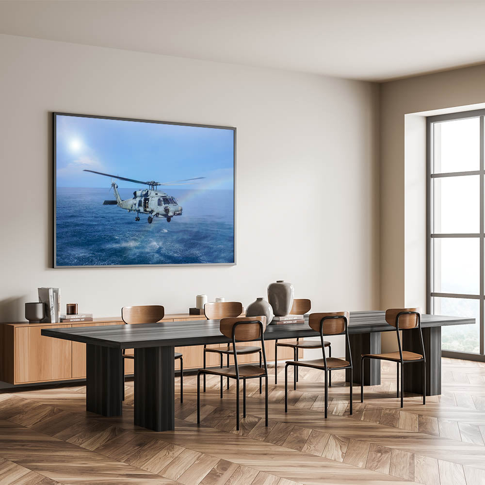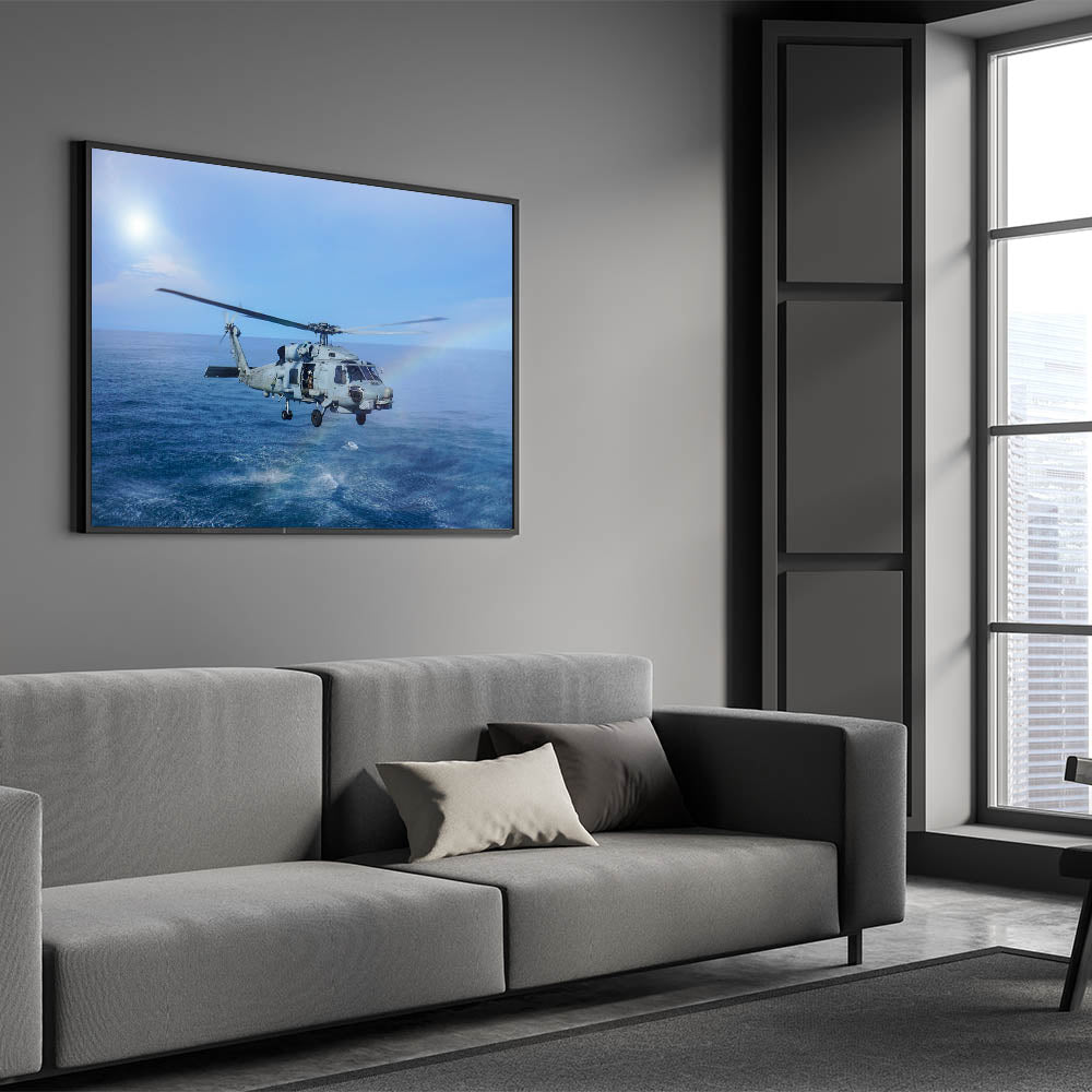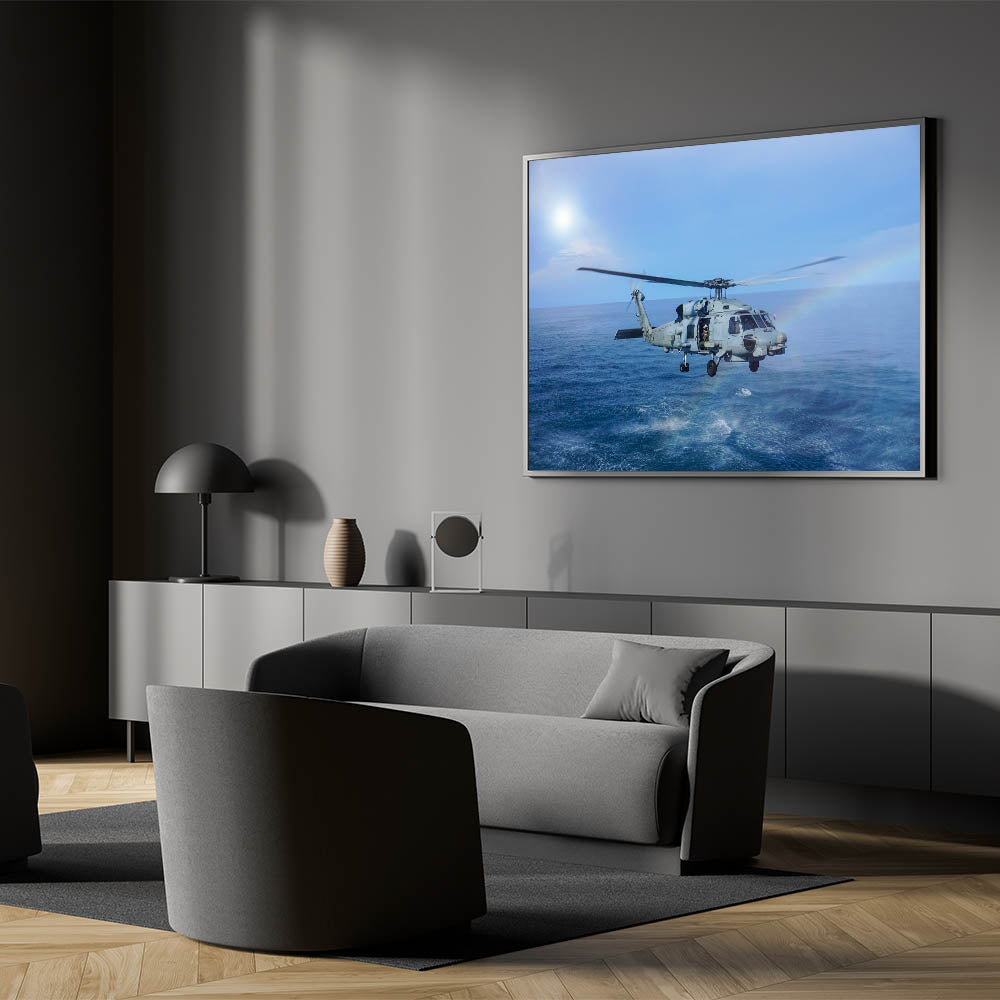 Naval Helicopter Over Ocean Wall Art: Aviation Canvas Prints for Decor