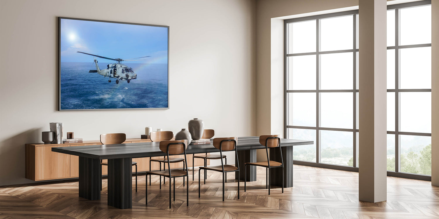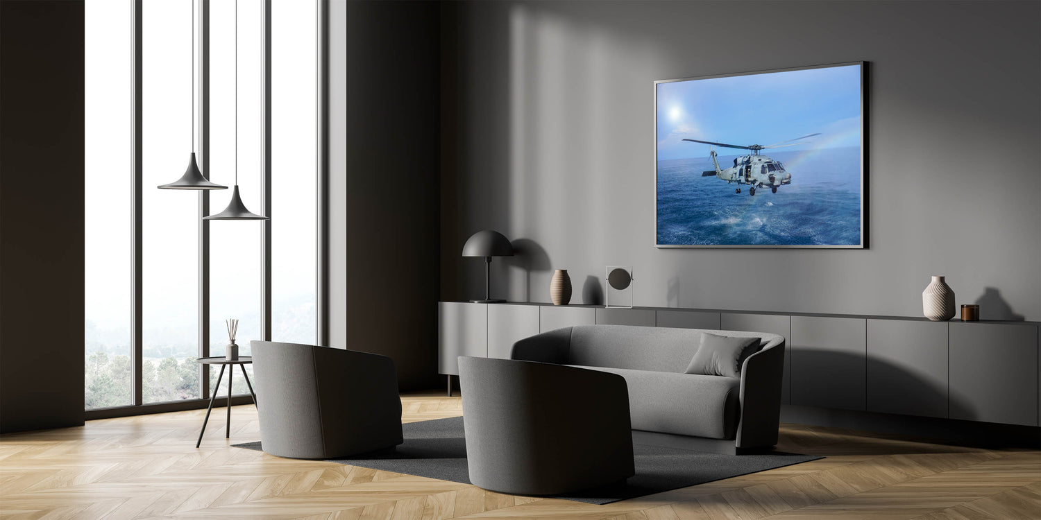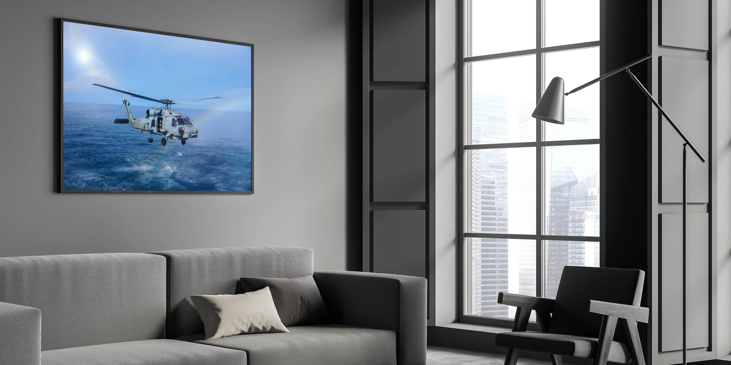 Naval Helicopter Over Ocean Wall Art: Aviation Canvas Prints for Decor