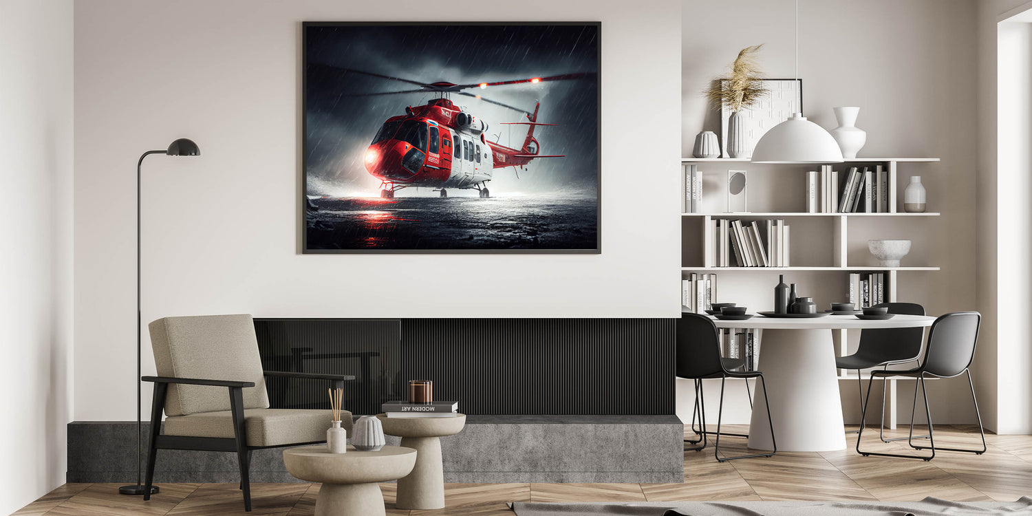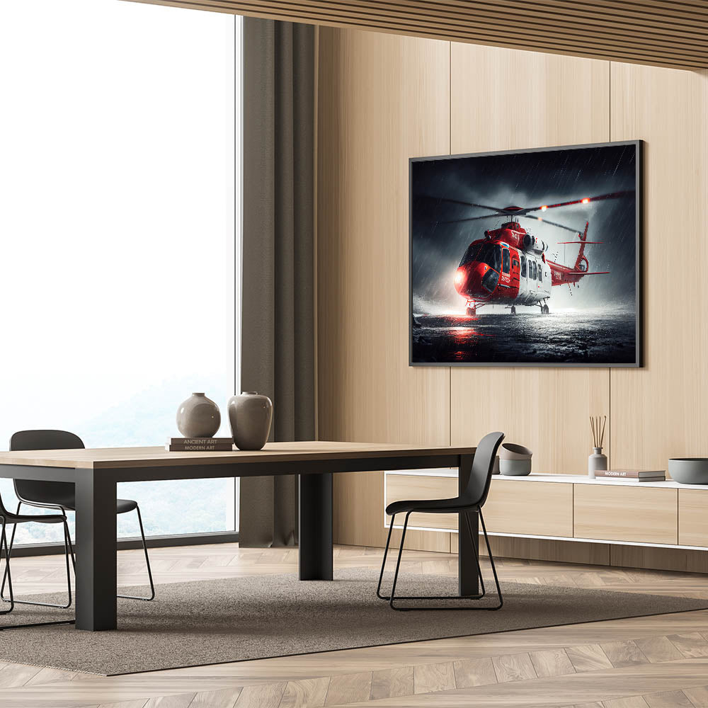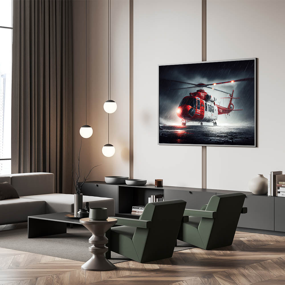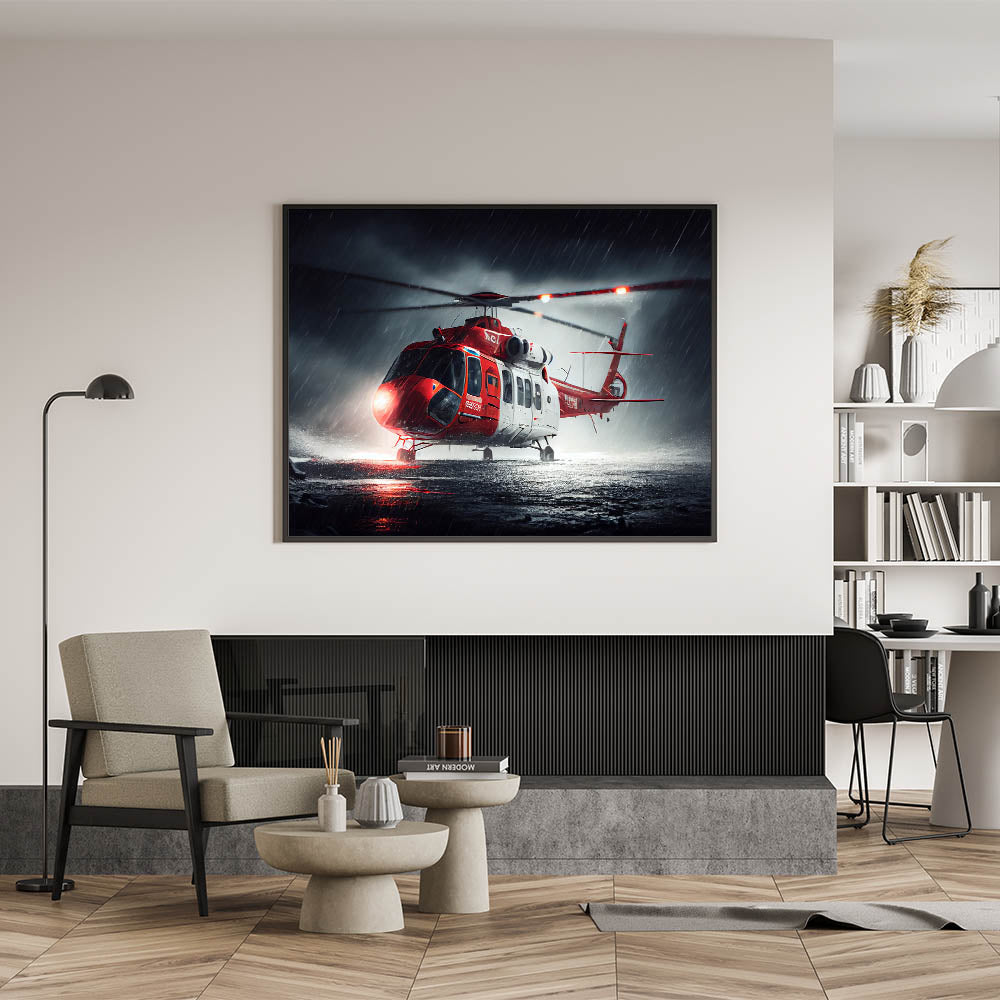 Rescue Helicopter in Storm Wall Art: Dramatic Aviation Canvas Prints