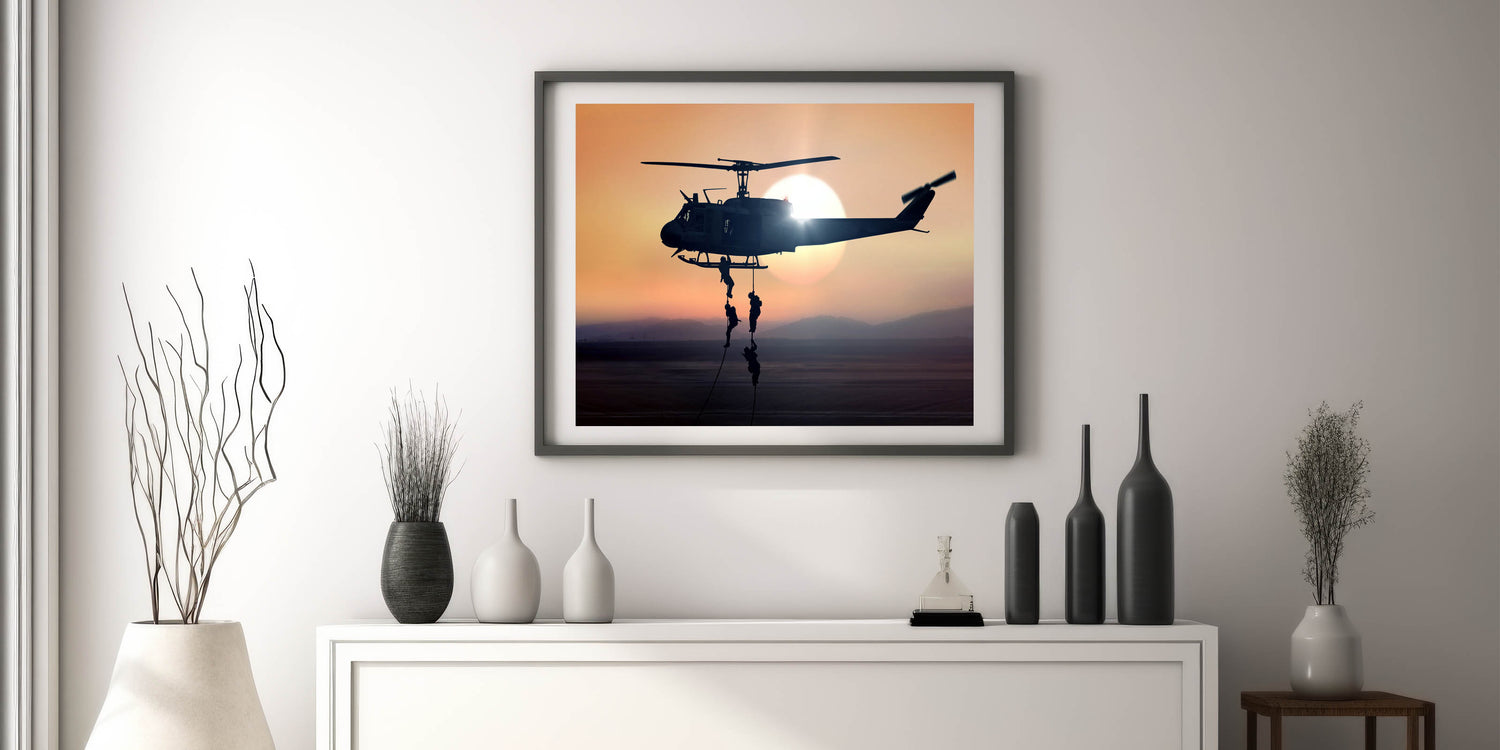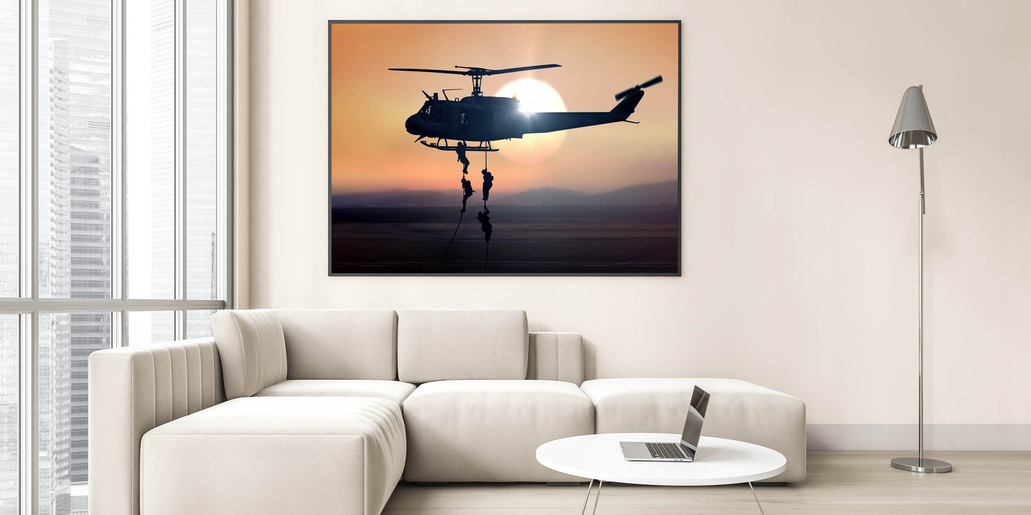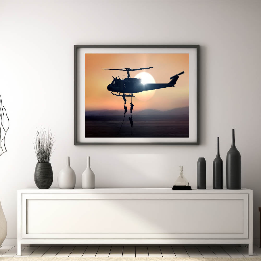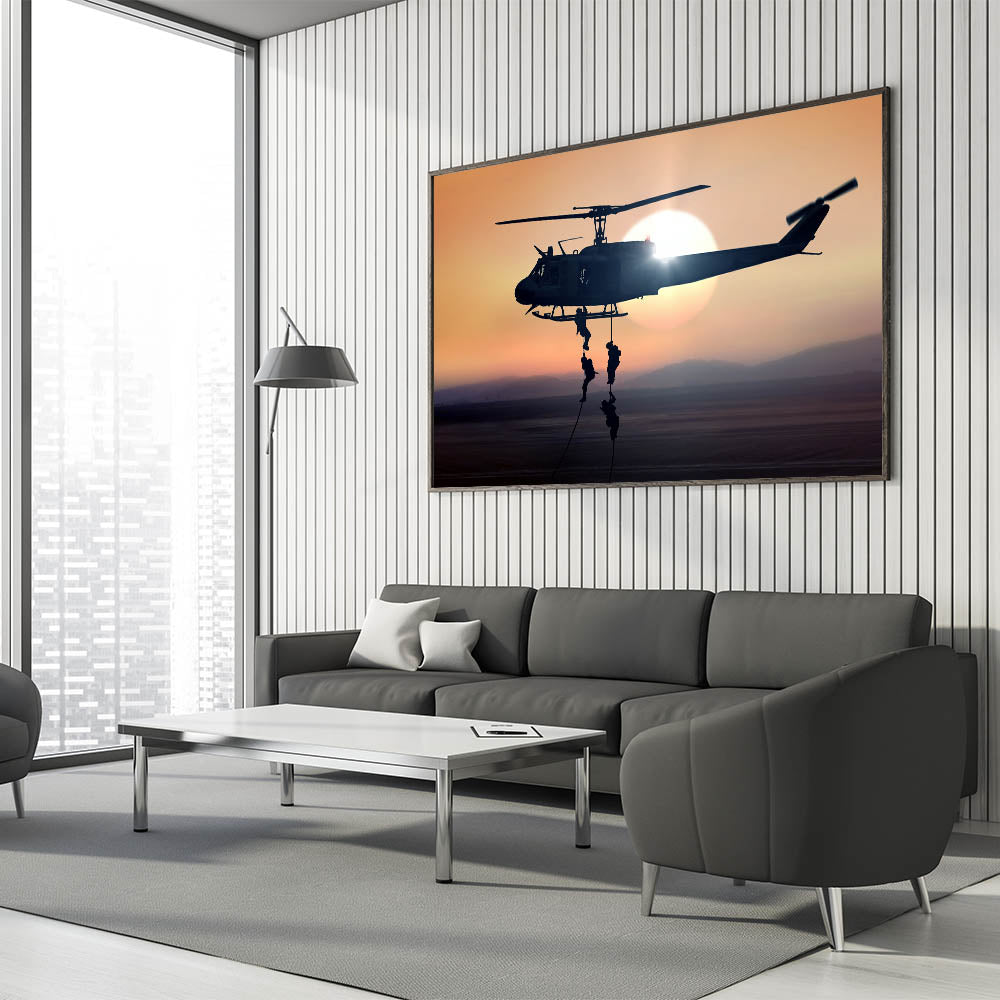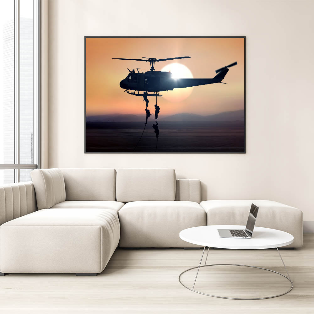 Sunset Military Operation Wall Art: Helicopter Canvas Prints for Decor
