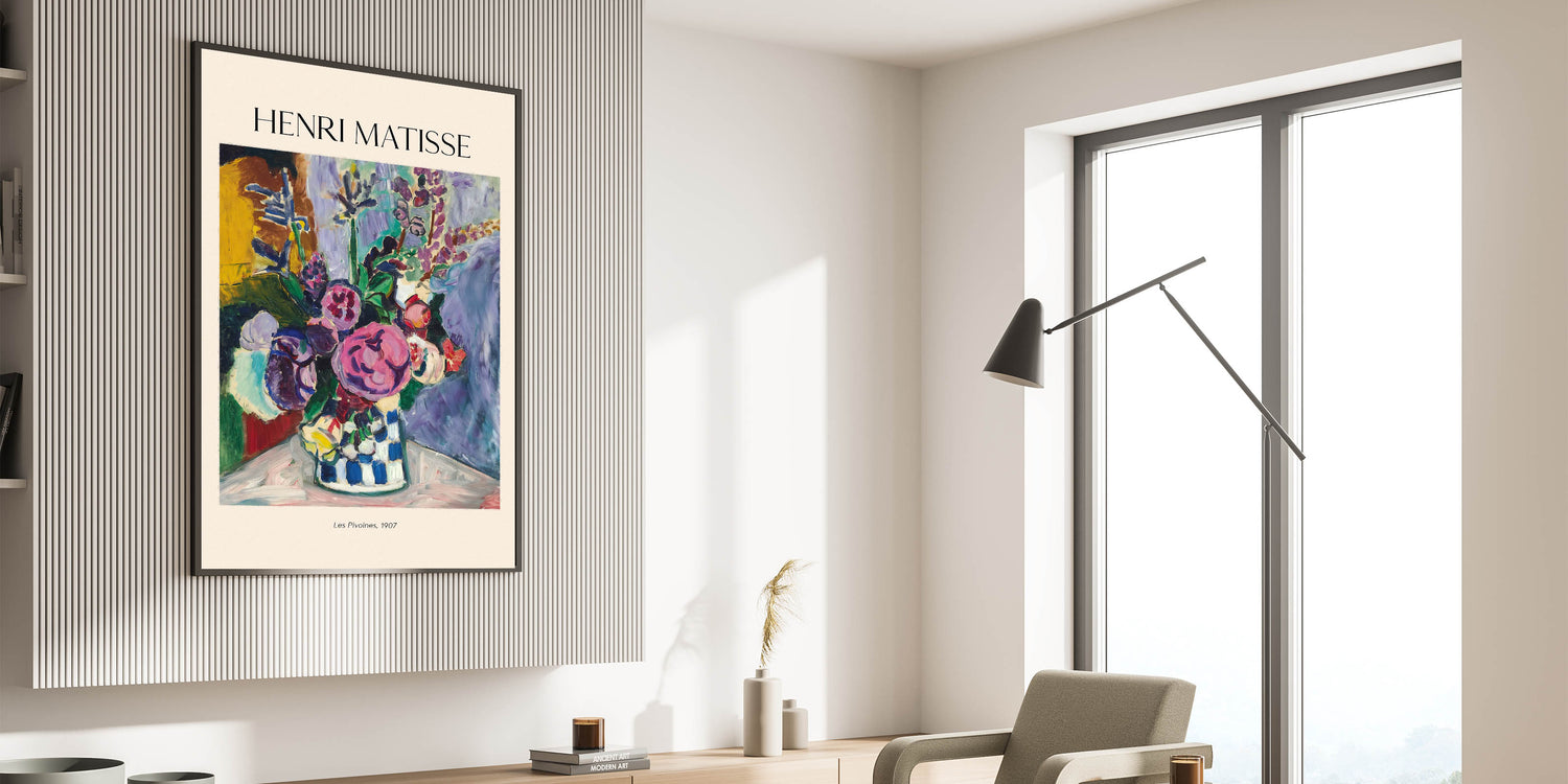 Transform your room with the timeless beauty of "Les Pivoines," a stunning representation of Henri Matisse’s unique art style and use of color.