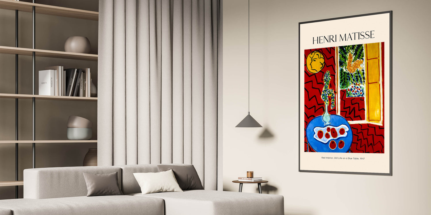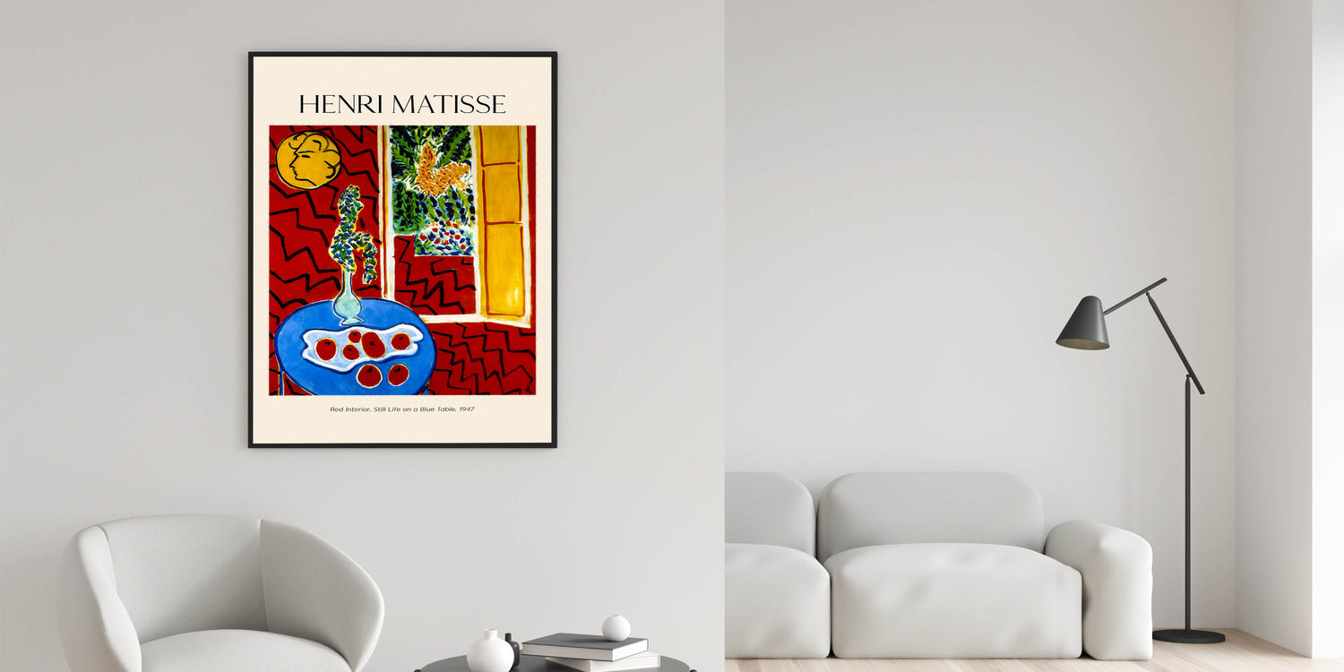 Matisse’s Red Interior is the perfect addition for anyone looking to bring energy, color, and the spirit of Fauvism into their home, offering a touch of timeless modern art to any room.