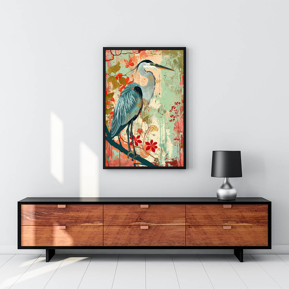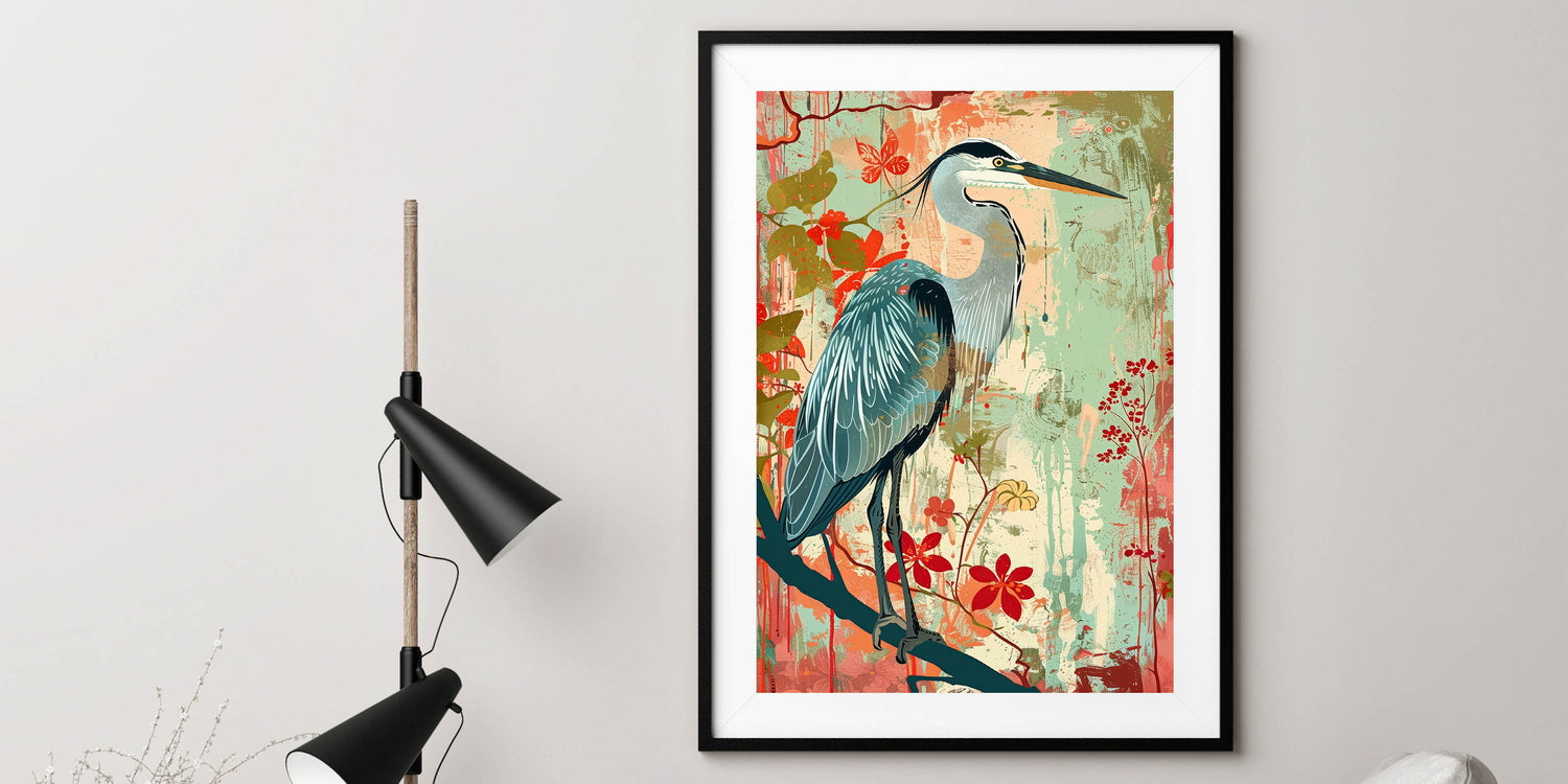 This Heron art print is more than just a decorative piece; it’s a vibrant celebration of nature and creativity. Perfect for anyone looking to make a bold and artistic statement in their home.