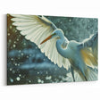 Egret Canvas Art - Dynamic Egret in Flight with Water Splash Decor