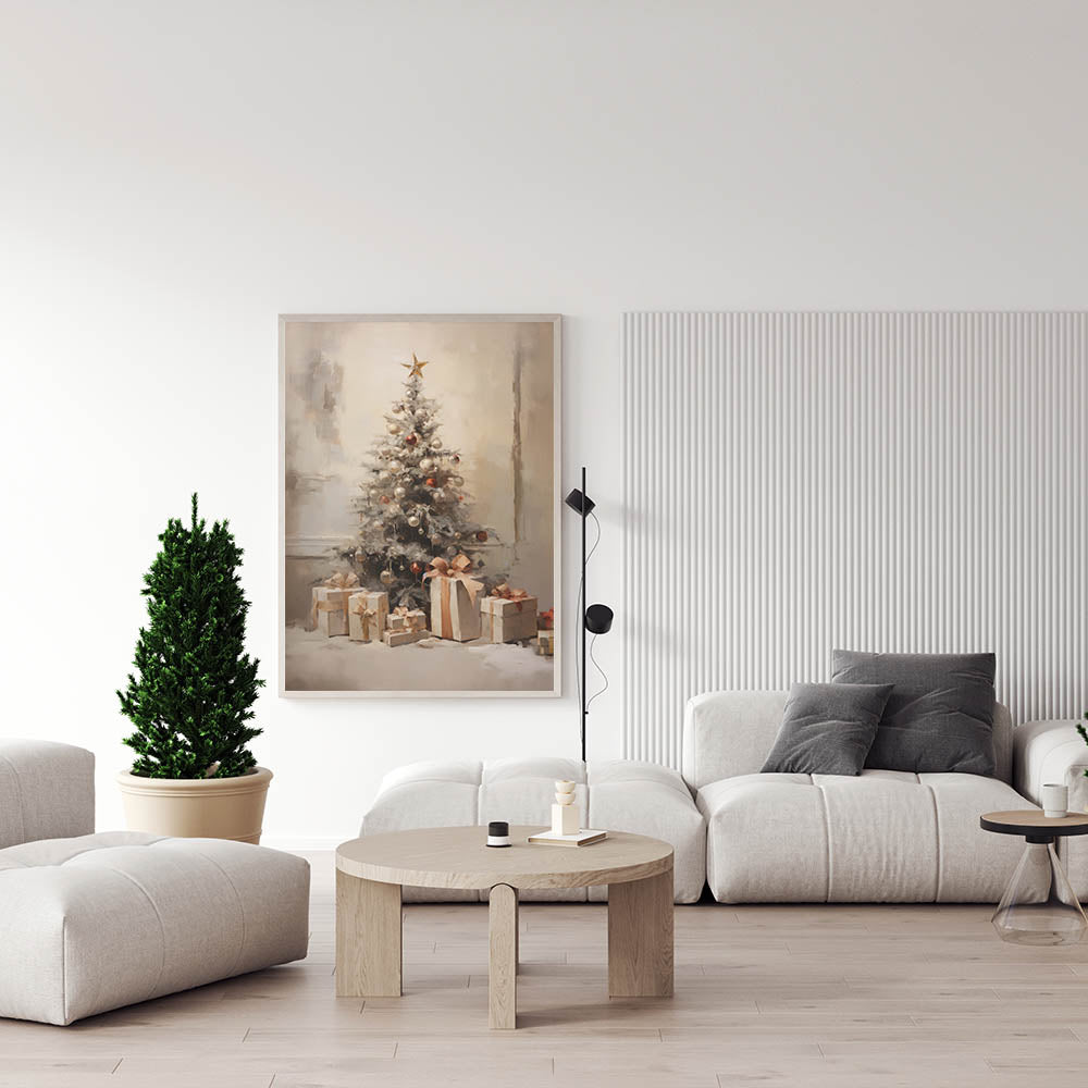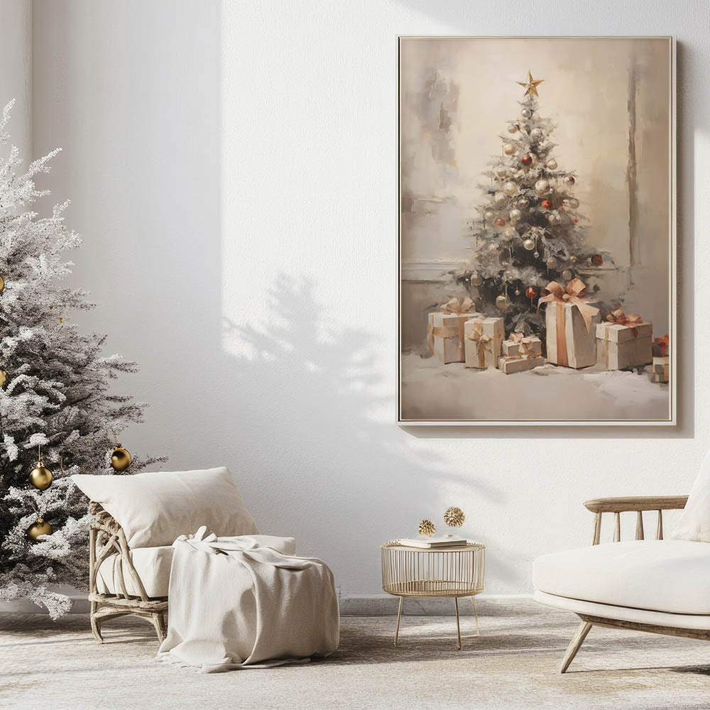Celebrate the magic of the season with this stunning Christmas Wall Art, featuring a beautifully decorated Christmas tree adorned with golden and red ornaments. The warm, neutral tones combined with delicate festive details create a timeless holiday aesthetic, making it the perfect addition to your home. Whether you're looking to enhance your living room, dining area, or entryway, this Christmas Canvas Art brings the spirit of the holidays to any space.