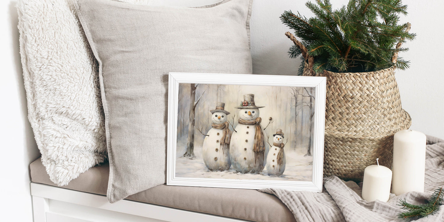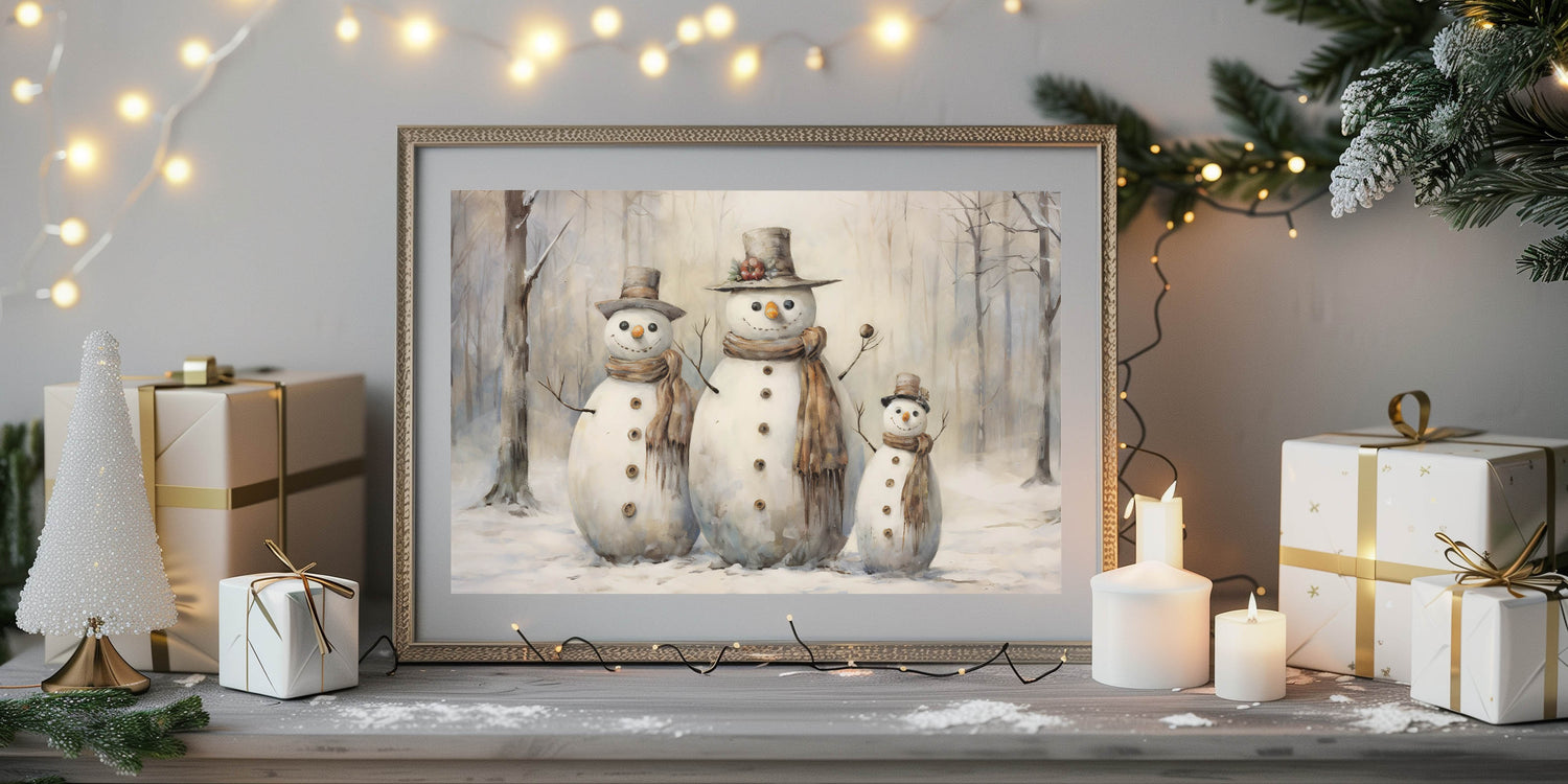 Winter Snowman Family – Heartwarming Christmas Art Prints