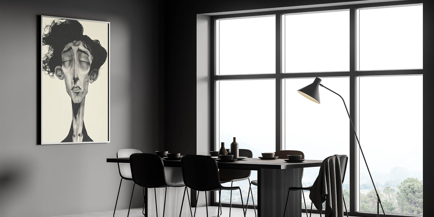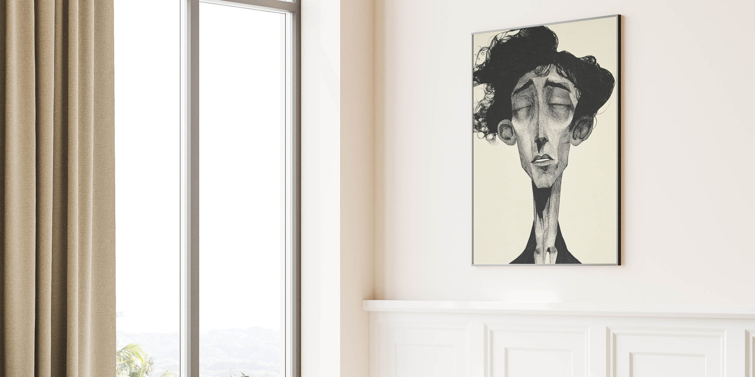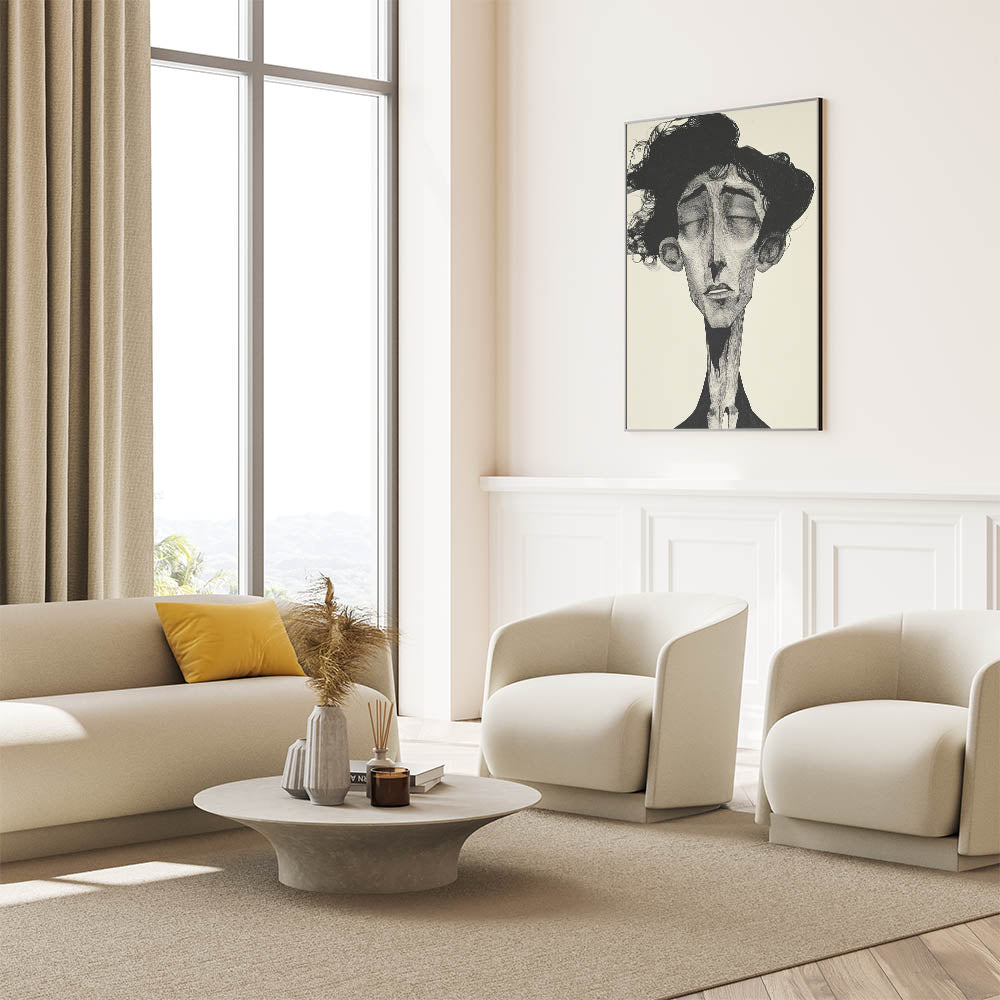 Immerse yourself in the raw emotion of this Abstract Figurative Art Collection piece, featuring a striking monochrome portrait with intricate detailing. This modern figure-inspired wall art captures deep emotion through elongated features and expressive shading, making it a captivating centerpiece for contemporary interiors. The black-and-white contrast enhances the dramatic effect, adding sophistication and artistic depth to any space.