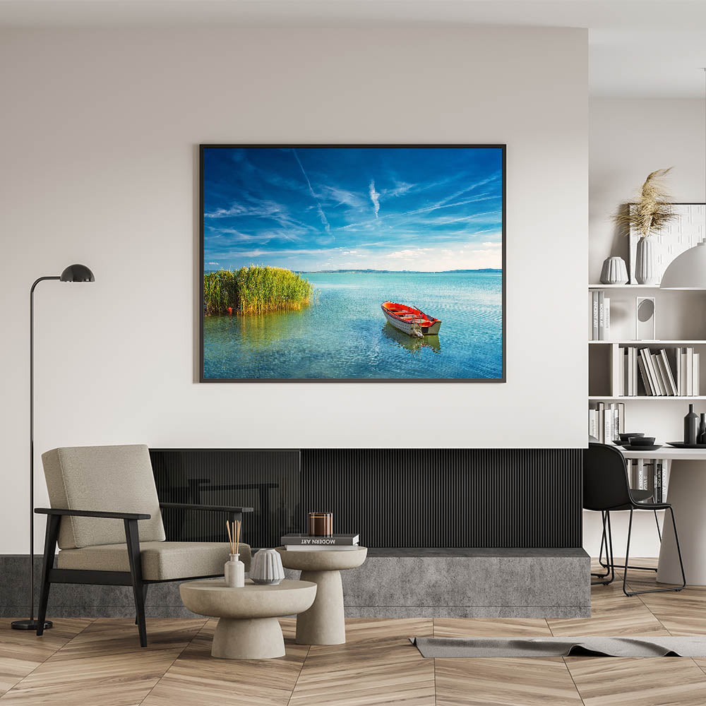 Budapest Canvas Prints - Serene Boat on Lake Balaton Hungary Art