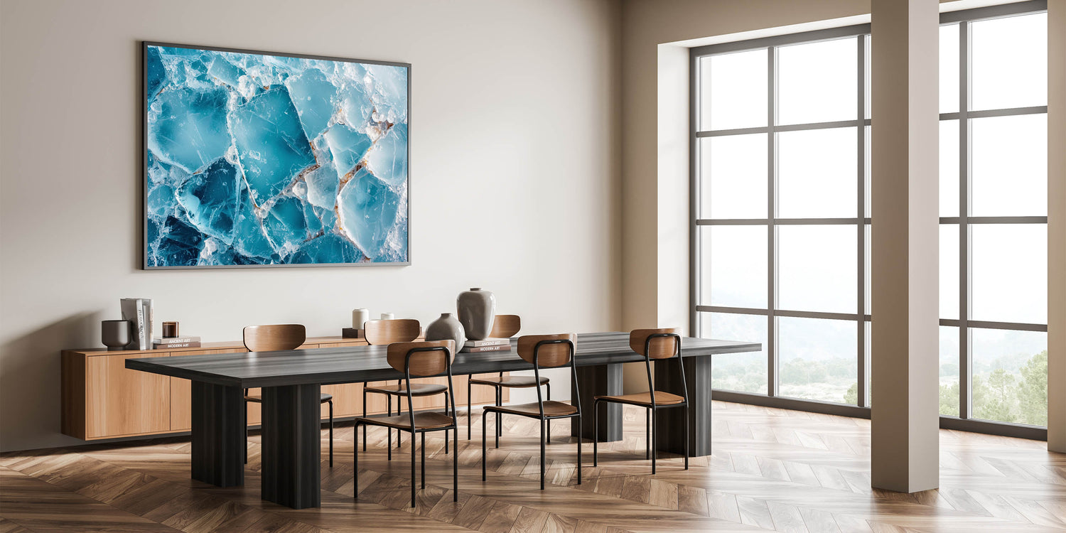 • Available in premium materials such as Stretched Canvas, Acrylic Glass, and Framed Canvas for a high-end finish.