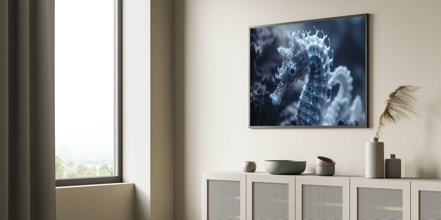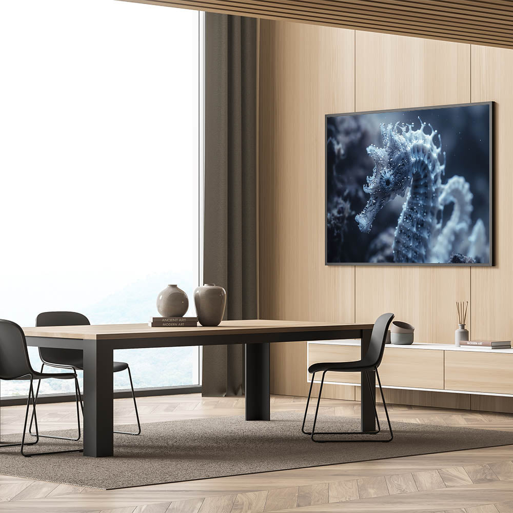 Bring the peaceful beauty of the sea and winter into your home with this frozen seahorse artwork. Its unique blend of aquatic life and winter frost offers a striking yet serene focal point, ideal for adding a touch of frozen elegance to any space.