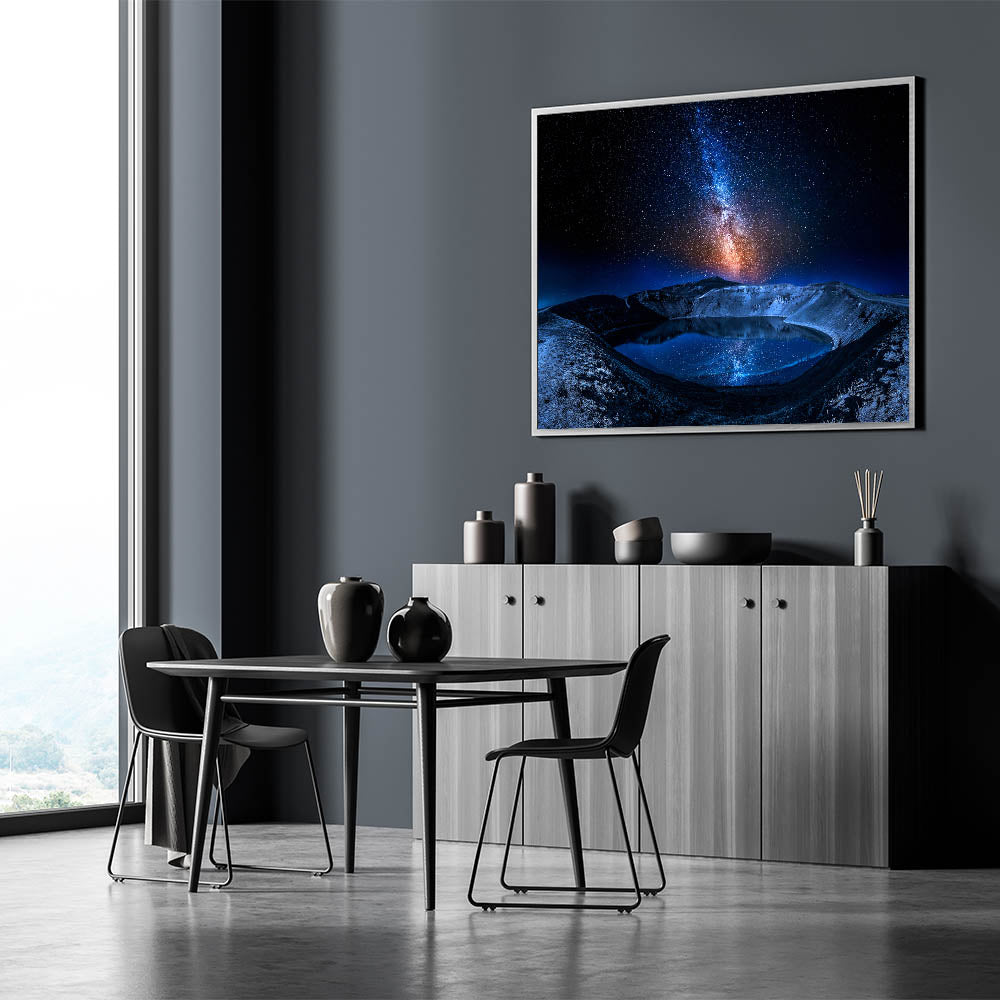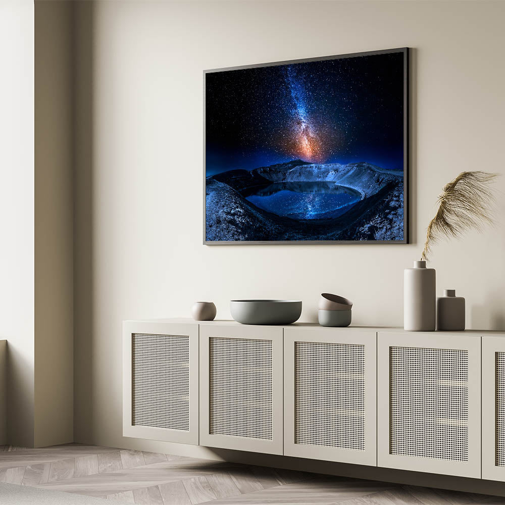 This artwork captures the magic of Iceland’s starry skies and is a perfect addition to any space that seeks to inspire wonder and tranquility. Add this piece of Icelandic Nature Art to your collection and bring the beauty of the cosmos into your home.