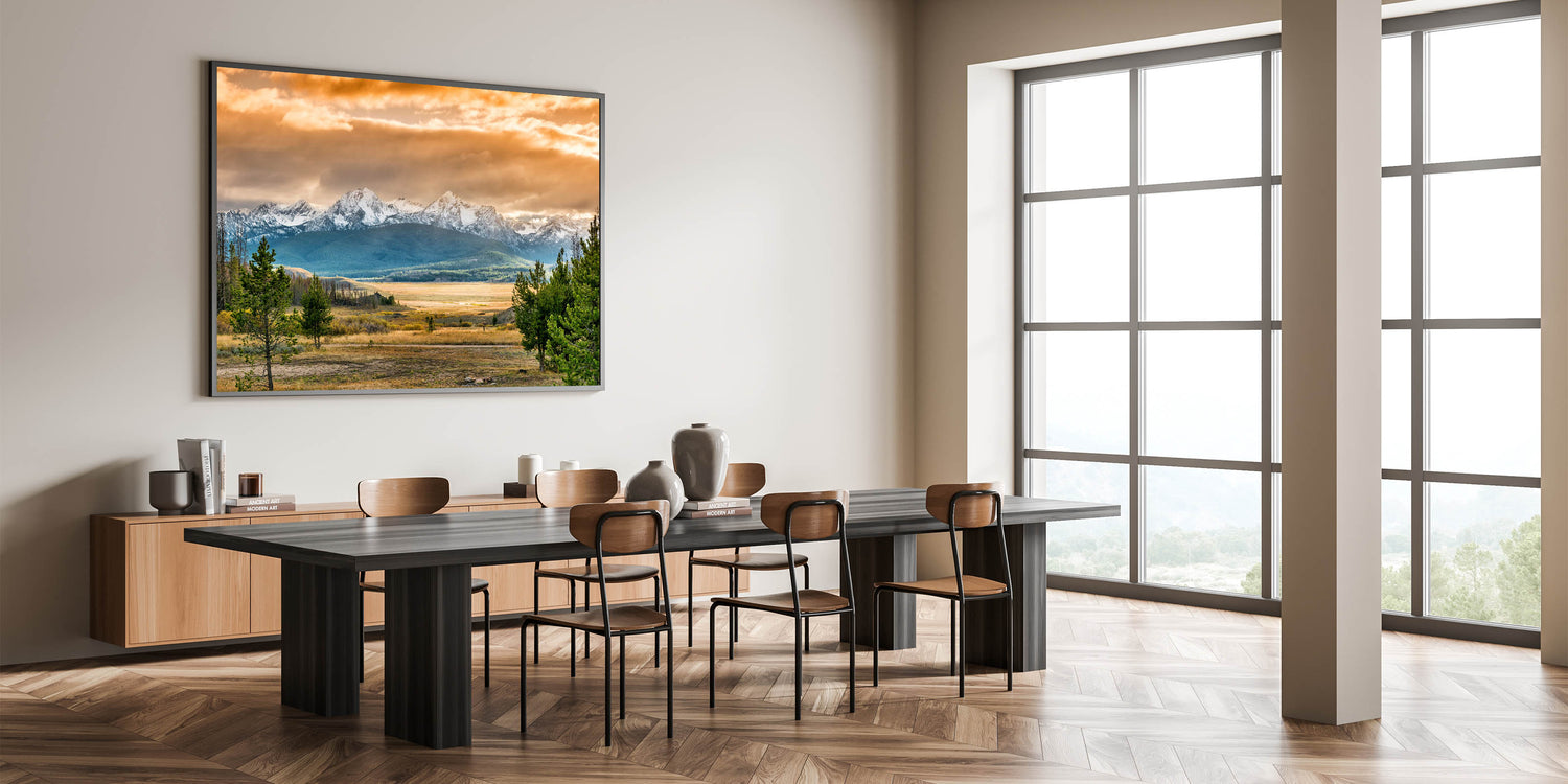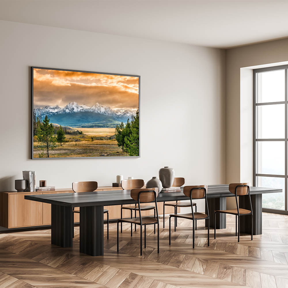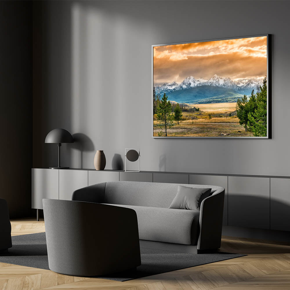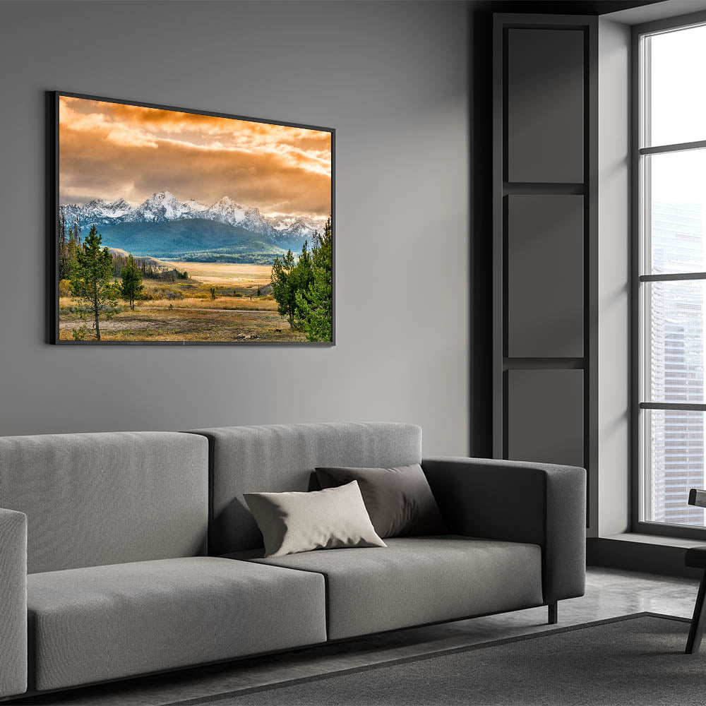 Enhance your interior with this beautiful Idaho mountain art that brings the great outdoors inside. Whether you choose a framed canvas or rolled print, this artwork offers a breathtaking representation of Idaho's most iconic landscapes.