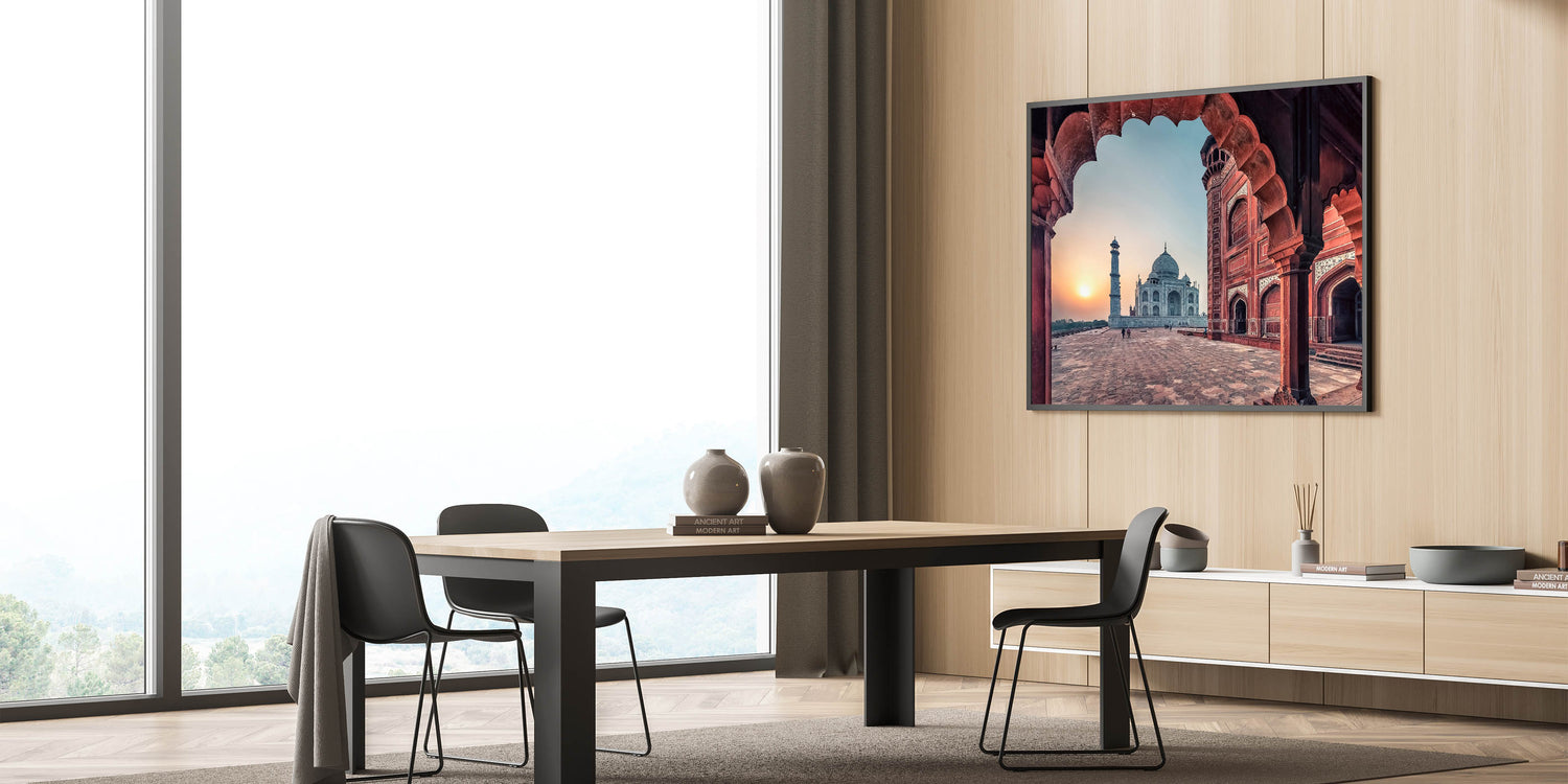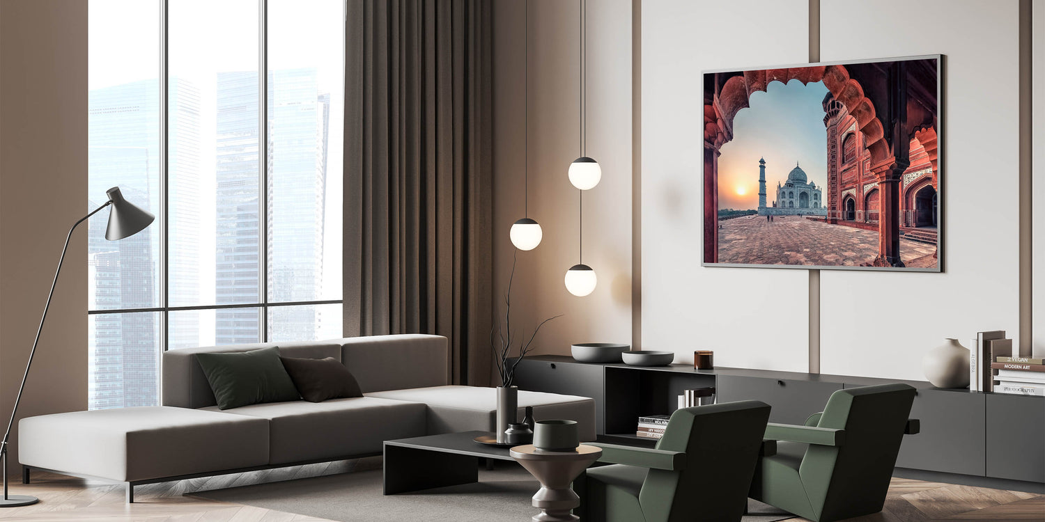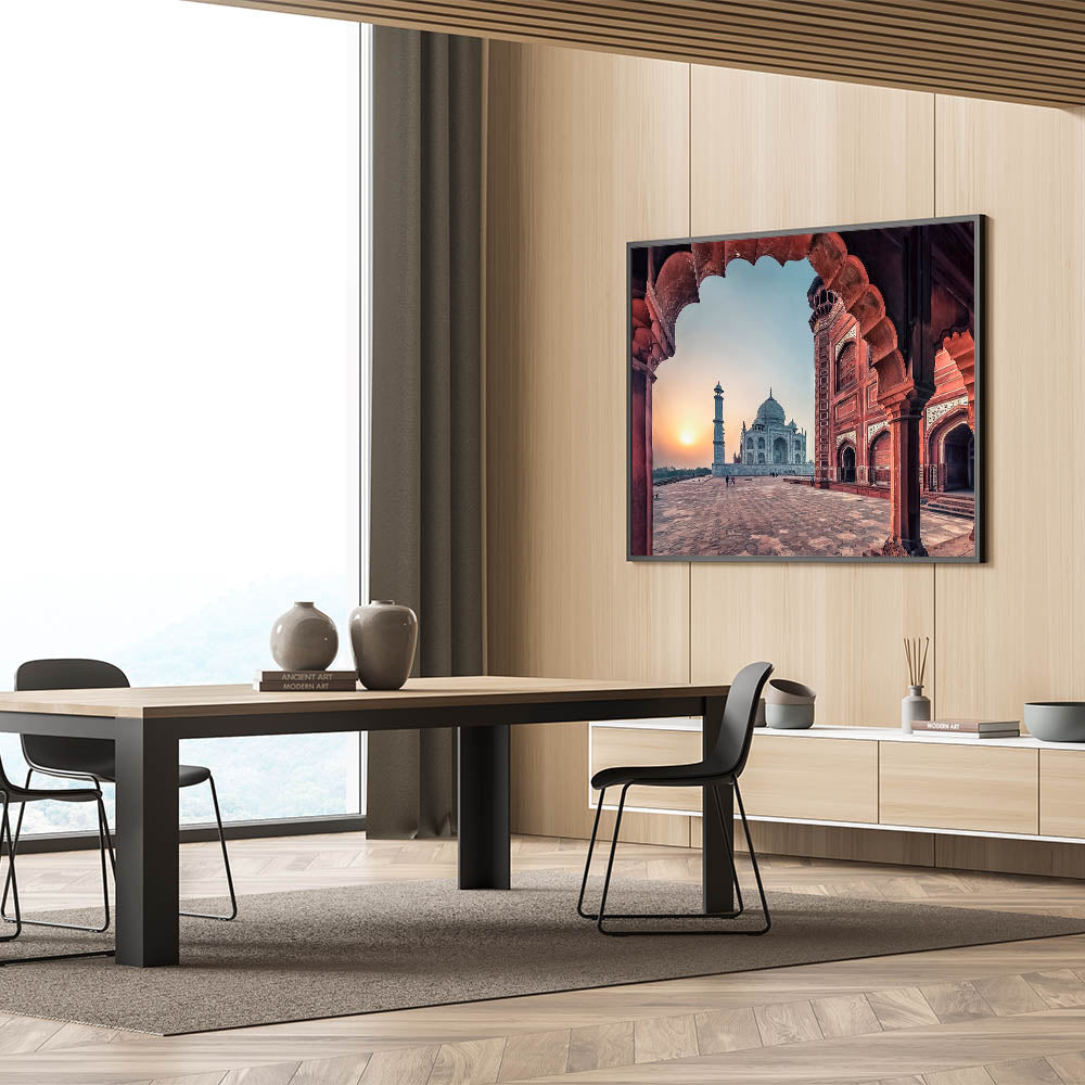 Framed India Artwork - Majestic Taj Mahal at Sunrise with Intricate Archway