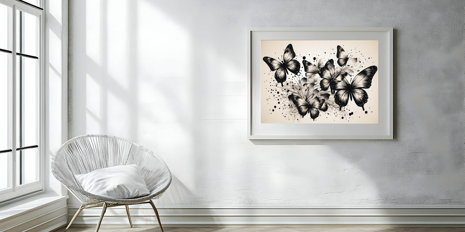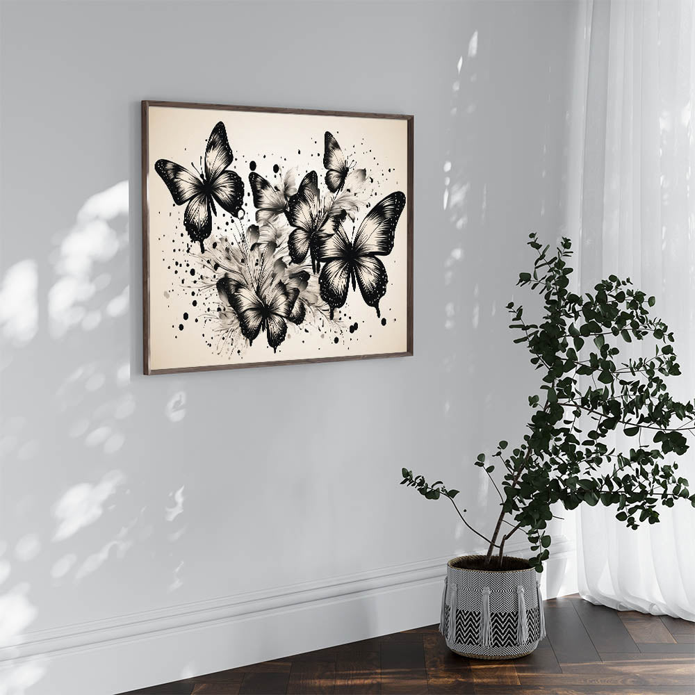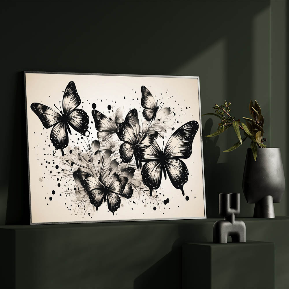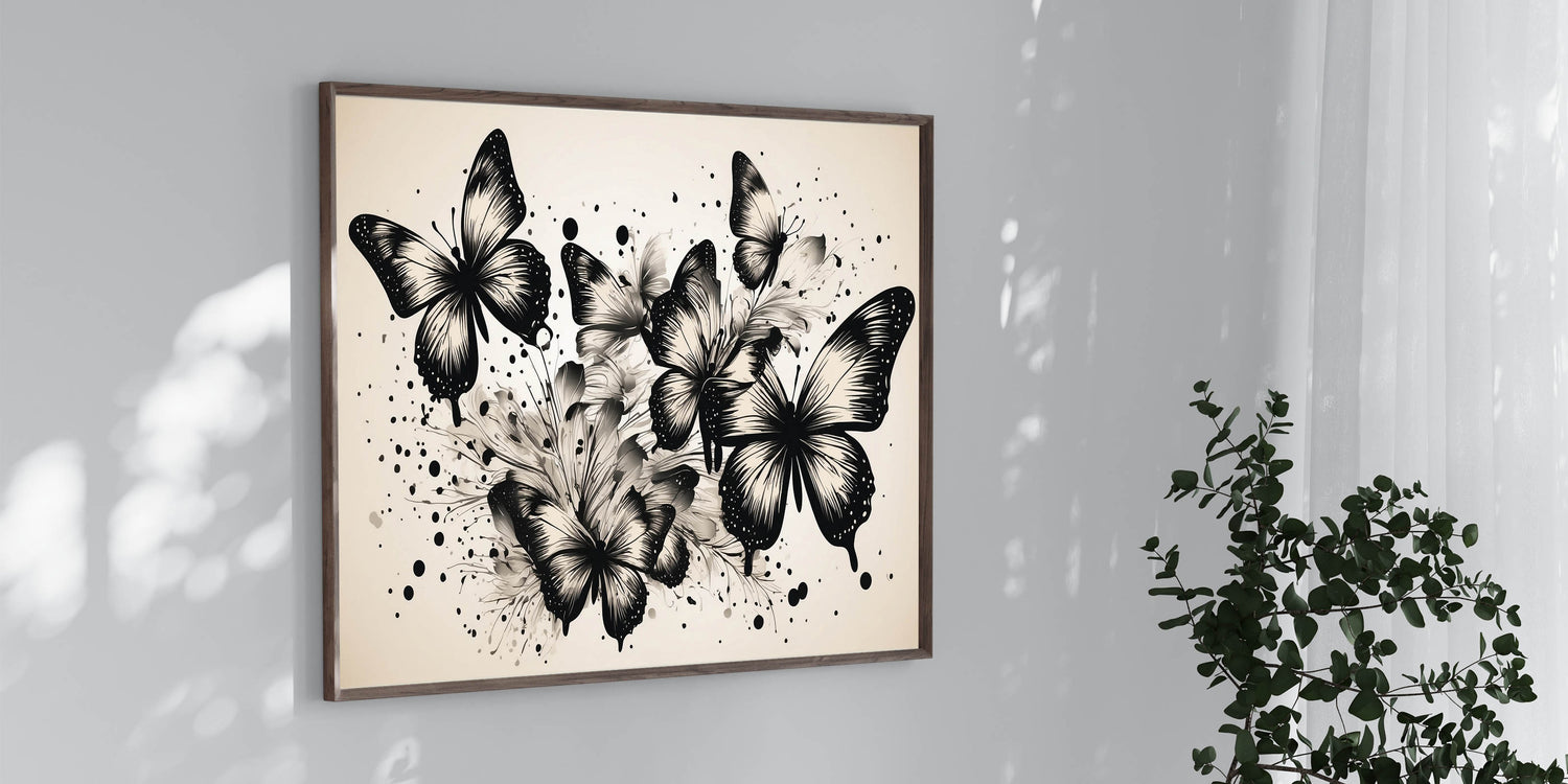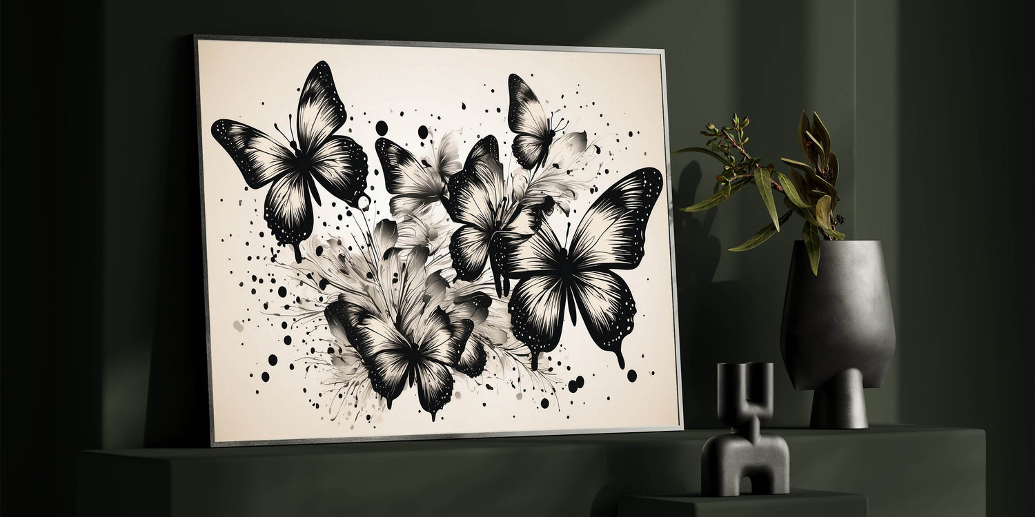 Monochrome Butterfly Wall Art - Elegant Canvas Print & Framed Decor