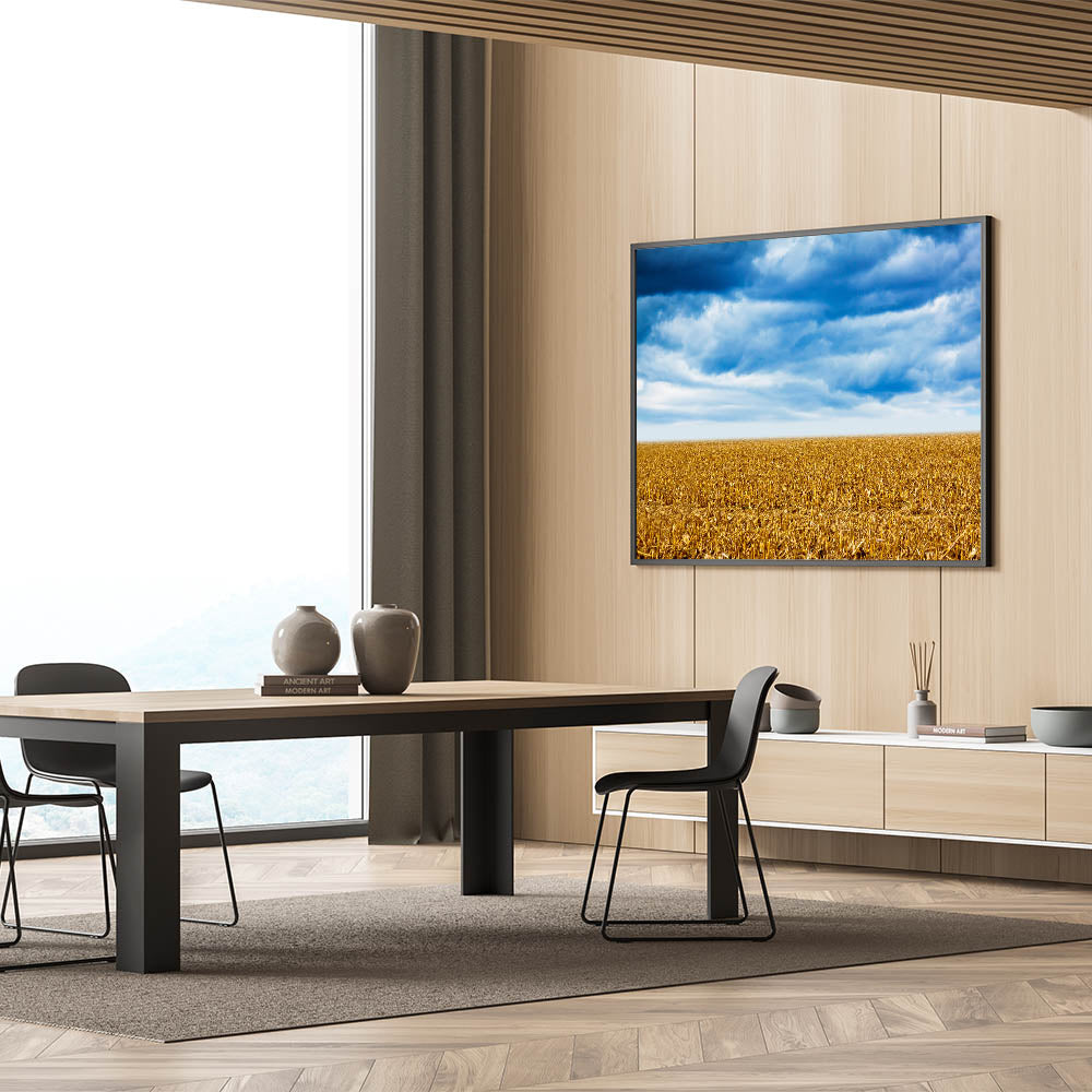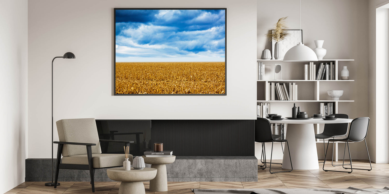 Experience the breathtaking beauty of Iowa’s vast agricultural landscapes with this captivating piece of Iowa Scenery Prints. This stunning image showcases a golden cornfield beneath a dramatic, stormy sky, making it the perfect choice for anyone who loves Iowa nature prints. Whether you're an admirer of the state's natural beauty or looking to add a serene yet bold element to your space, this artwork is sure to leave an impression.