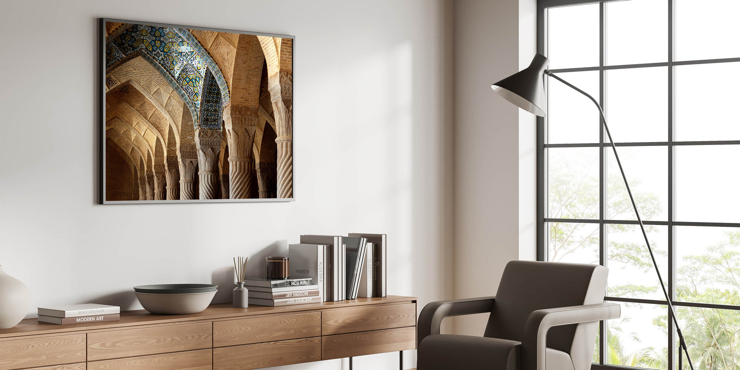 - Authentic Persian artwork inspired by traditional architectural elements