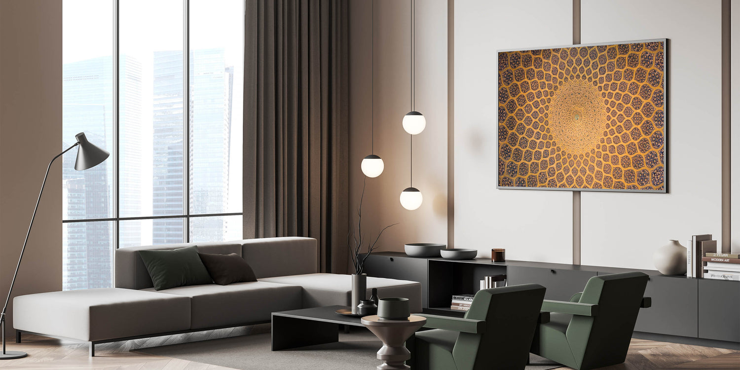 - Authentic Persian artwork inspired by traditional architectural designs