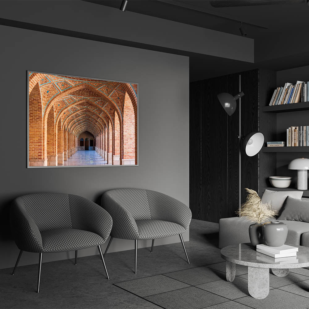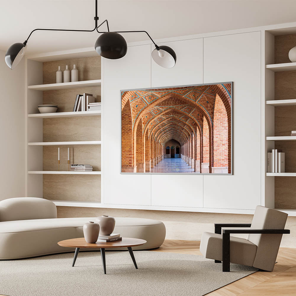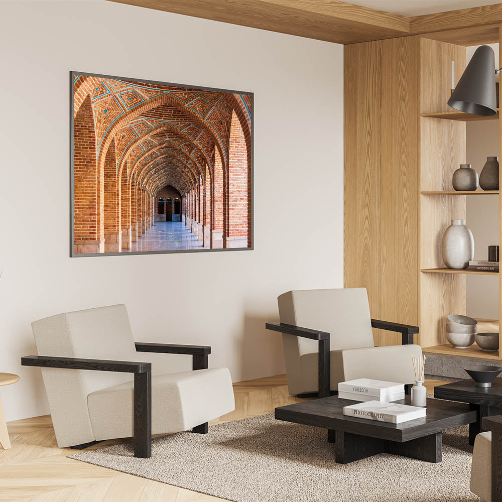 Persian Arch Wall Art - Geometric Brick Corridor with Symmetrical Arches