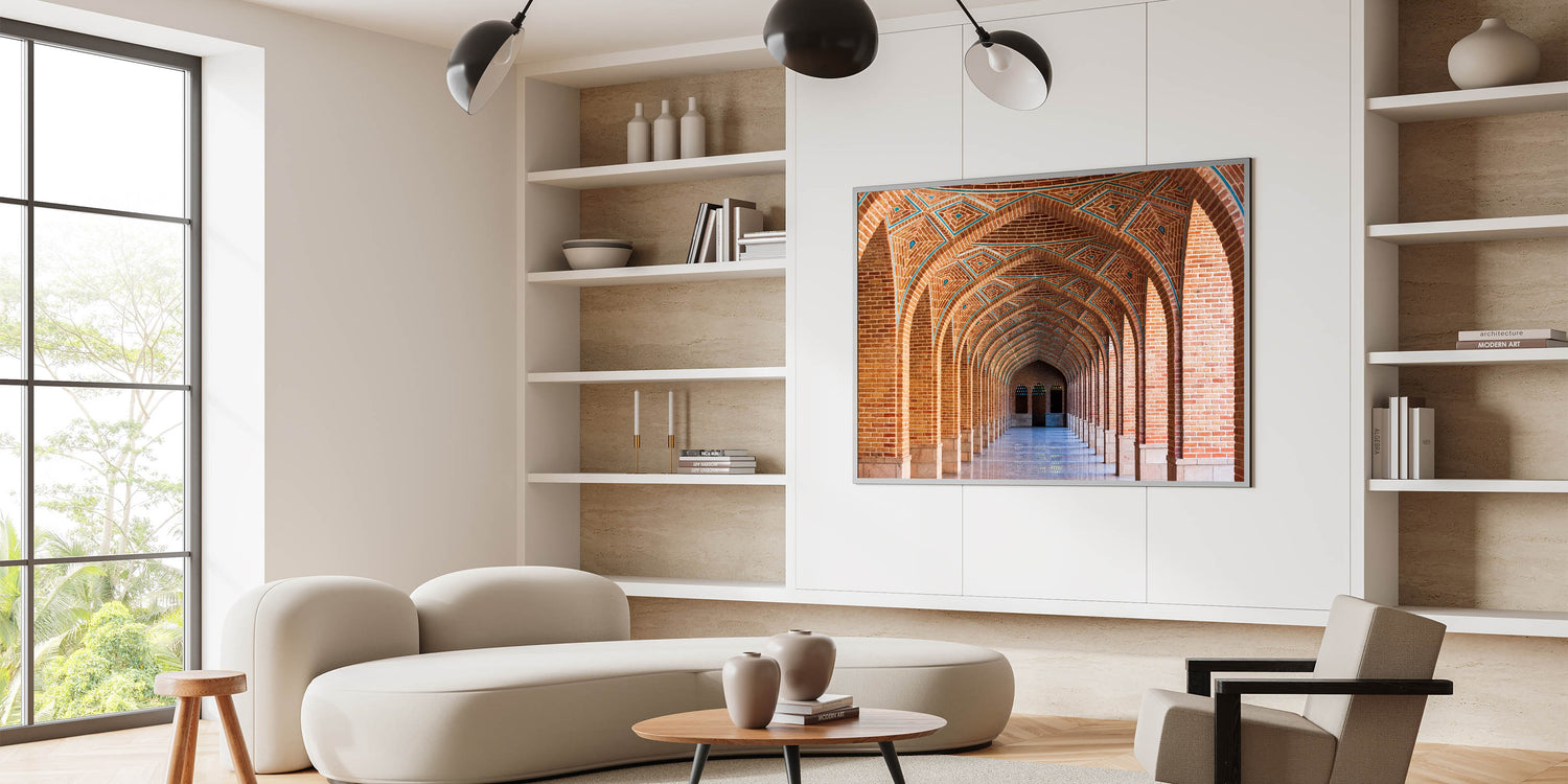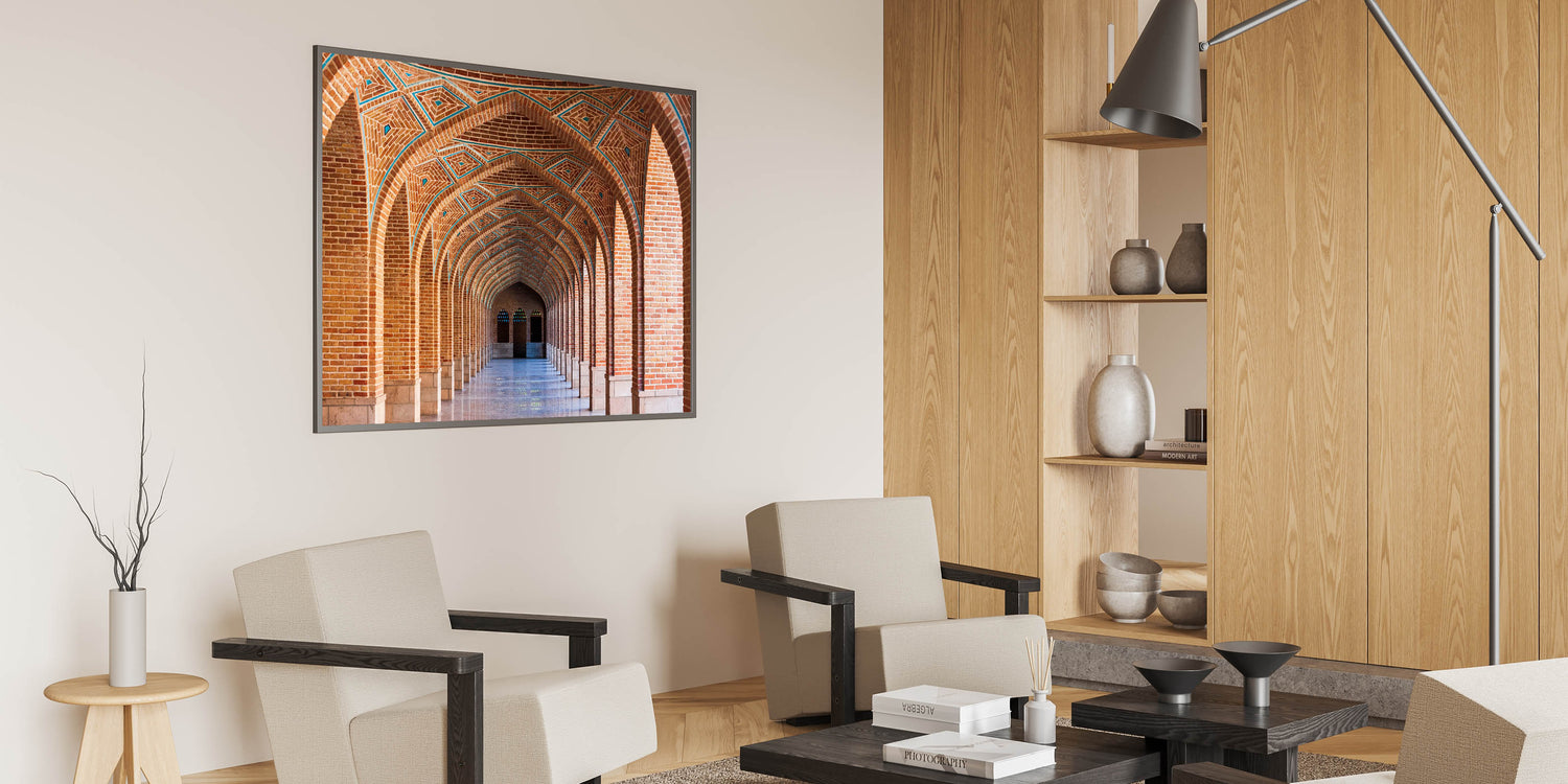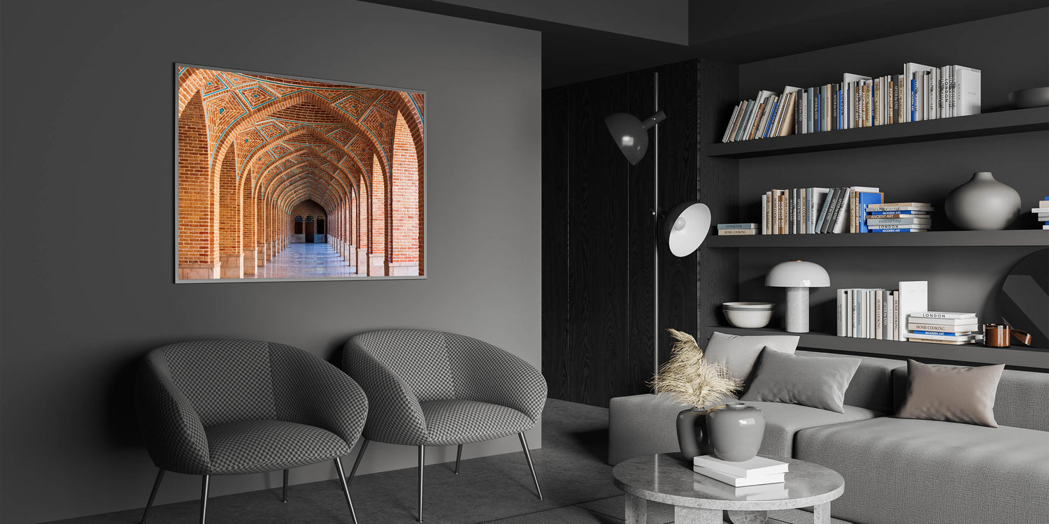 Persian Arch Wall Art - Geometric Brick Corridor with Symmetrical Arches