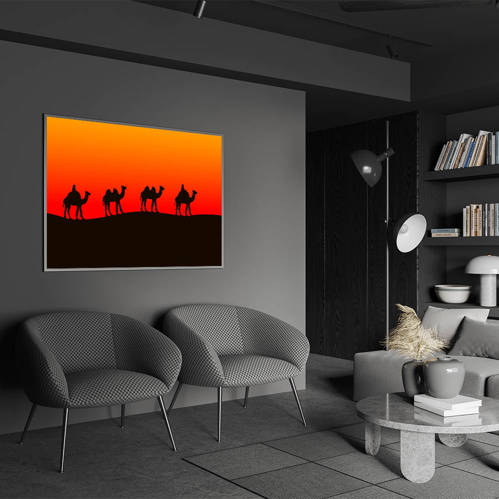 Iraq Wall Art – Mesopotamian Camel Caravan Sunset Art