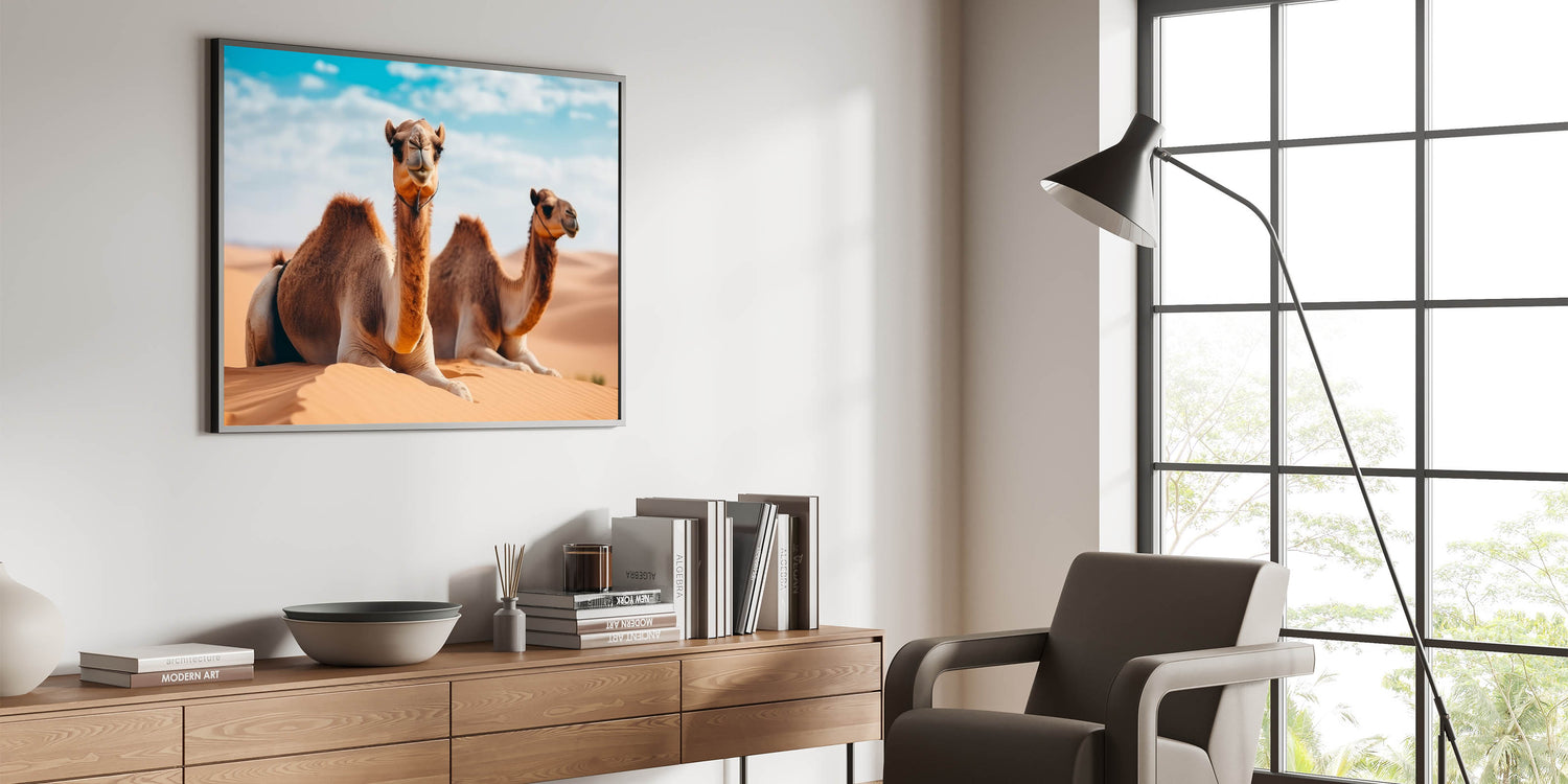 - Authentic Iraq Wall Decor inspired by the natural beauty of the Mesopotamian desert and its iconic camels.