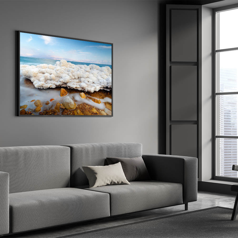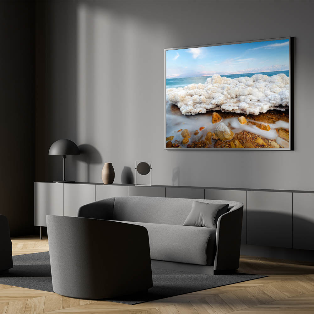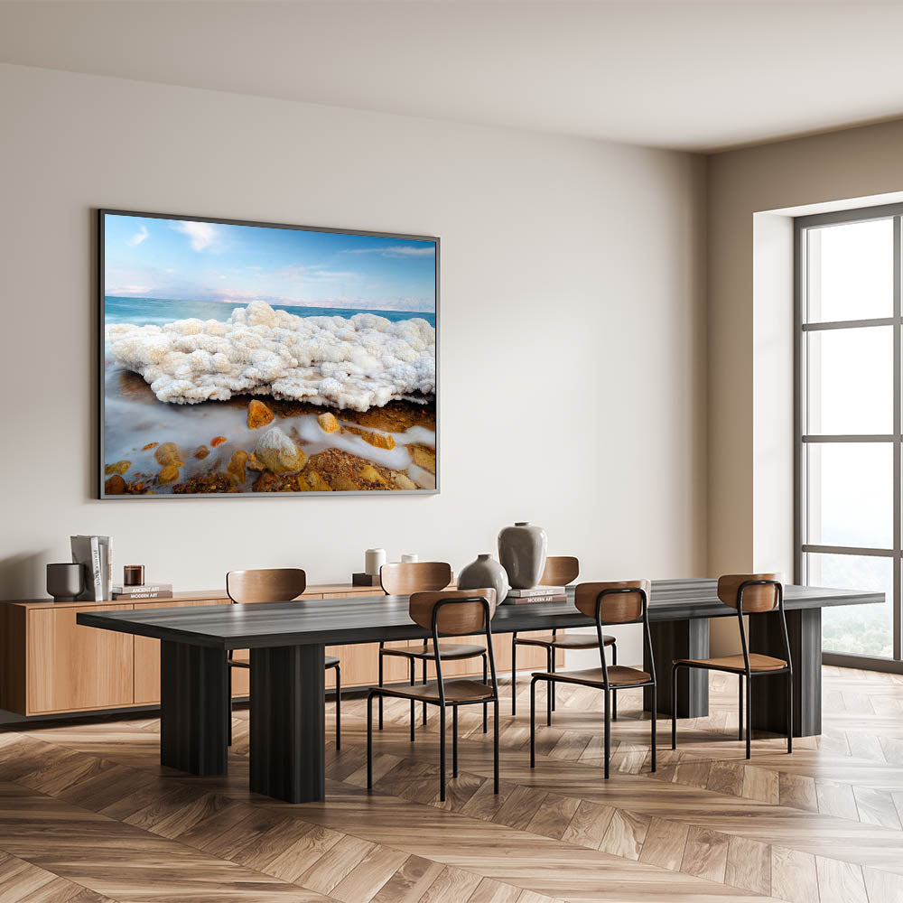 This piece of Dead Sea wall art captures one of nature's most fascinating elements, the salt formations along the shores of Israel’s Dead Sea. Its calm and unique beauty makes it a perfect focal point for any modern or traditional setting.