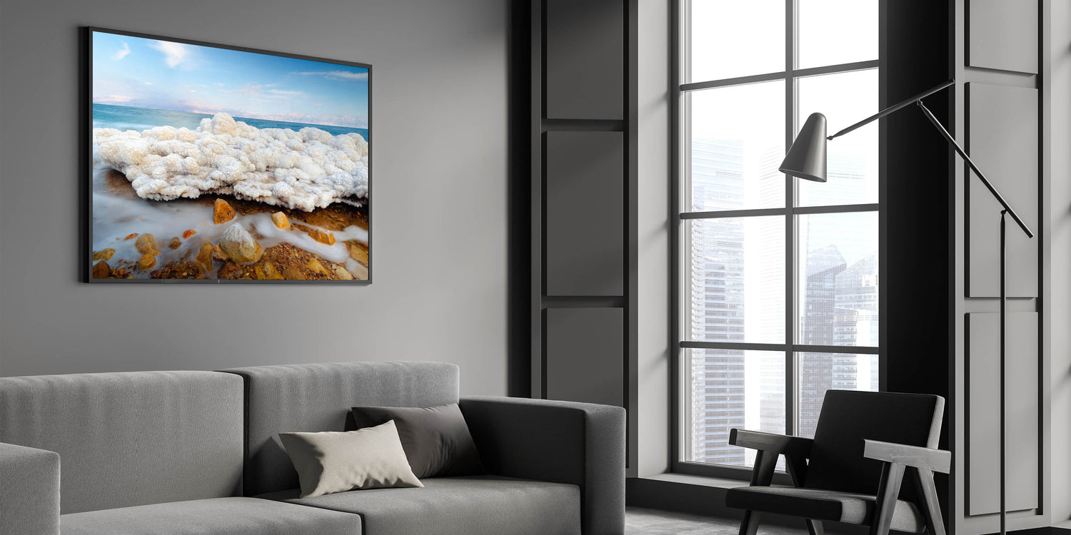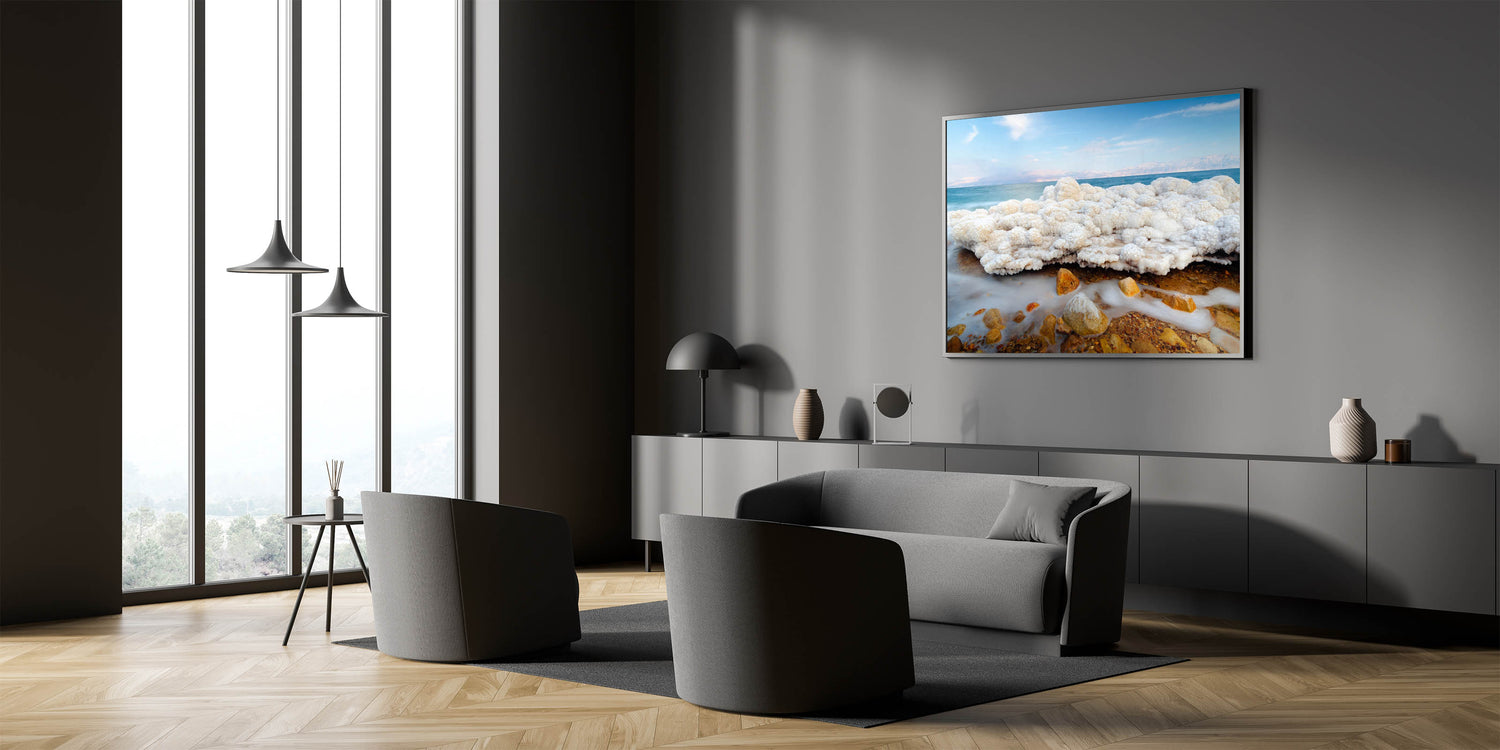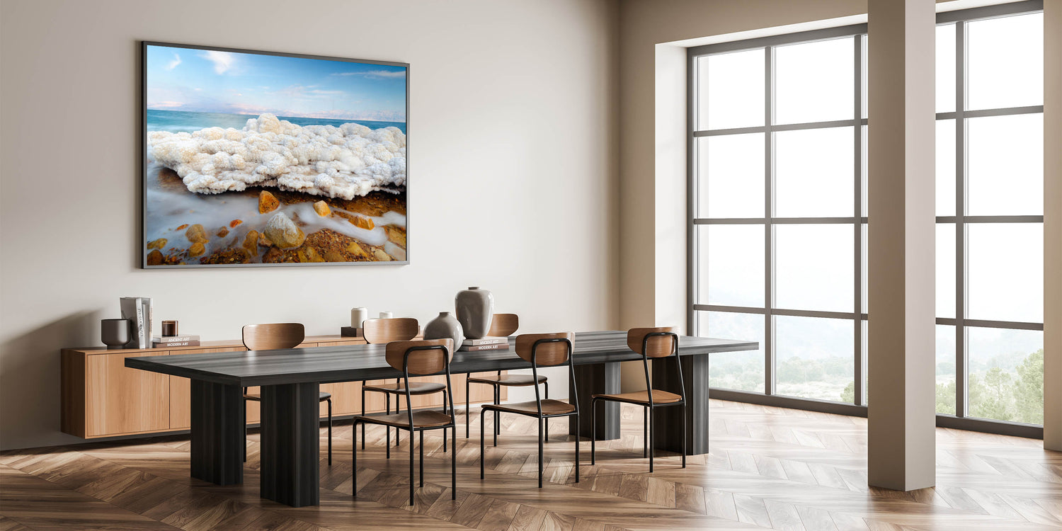 This piece of Dead Sea wall art captures one of nature's most fascinating elements, the salt formations along the shores of Israel’s Dead Sea. Its calm and unique beauty makes it a perfect focal point for any modern or traditional setting.