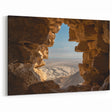 Step into the history and beauty of the Holy Land with this stunning piece of Israel wall art. Capturing the view through an ancient stone ruin, this photograph perfectly frames the breathtaking desert landscape below. This artwork reflects the deep history and cultural significance of Israel, making it a must-have for anyone drawn to biblical art prints and scenic Israel photography.