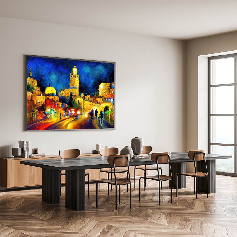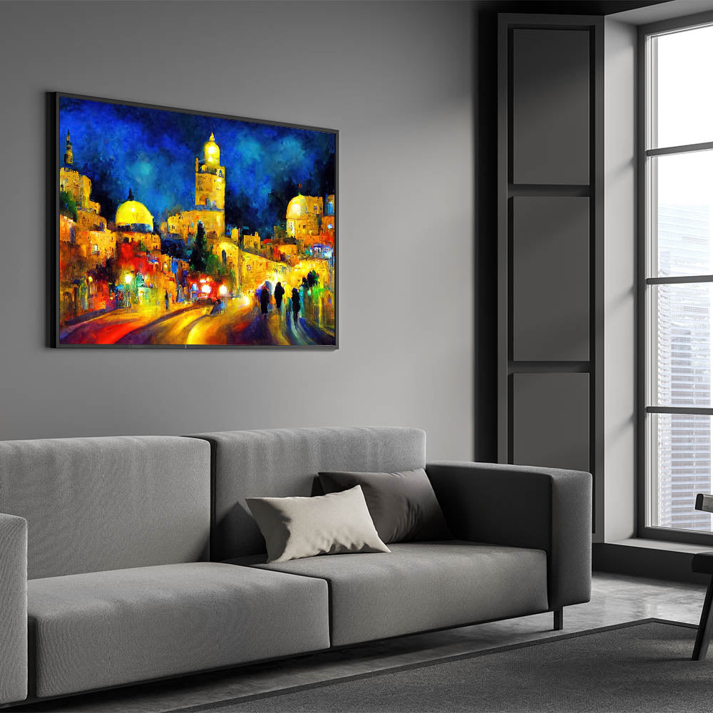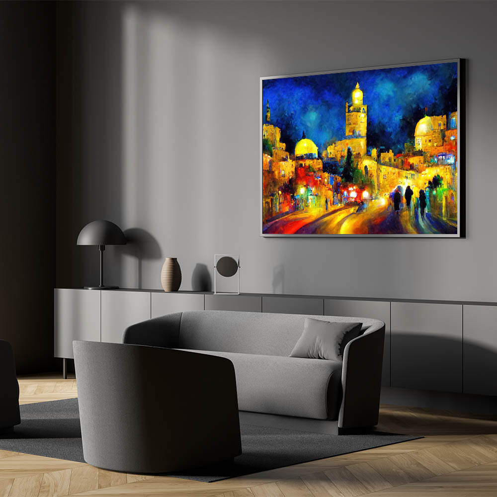 Jerusalem Art Prints – Vibrant Night Scene, Middle Eastern Holy Land Art