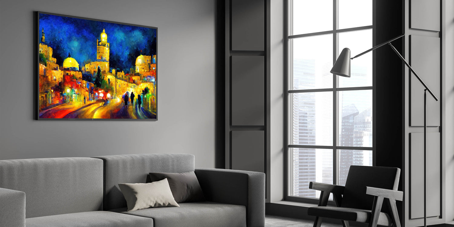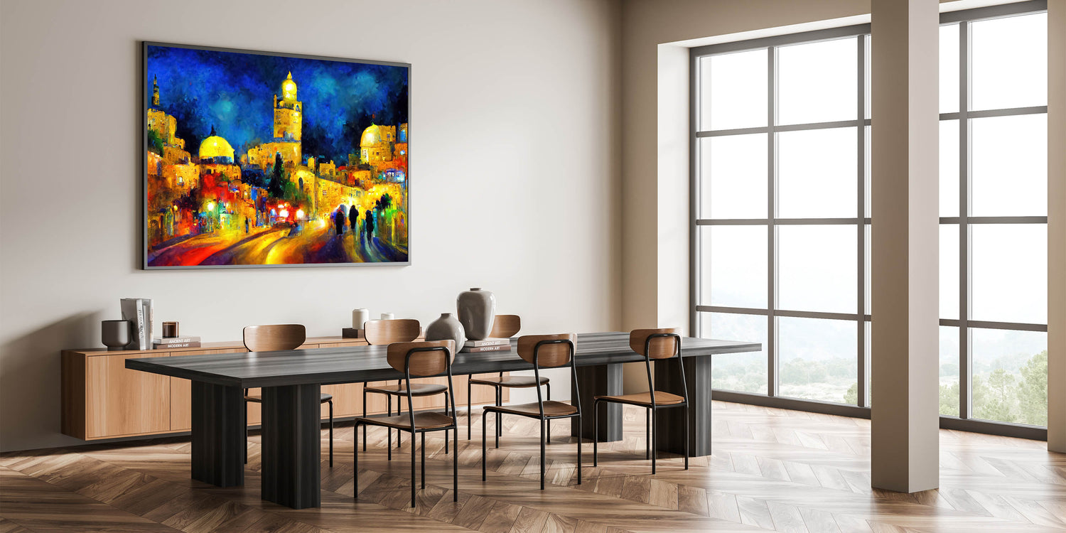 This breathtaking artwork will transport you to the heart of Israel’s ancient city, blending historical significance with contemporary artistic flair. Its vibrant colors and intricate details make it a perfect focal point for any living space.